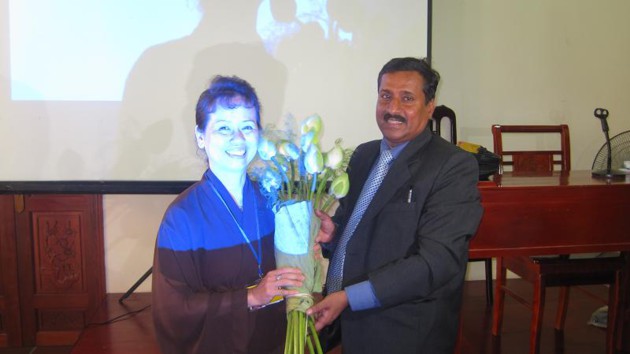 Tại buổi nói chuyện, PGS Amarjiva Lochan đã chia sẻ những nghiên cứu của mình về Phật giáo.
