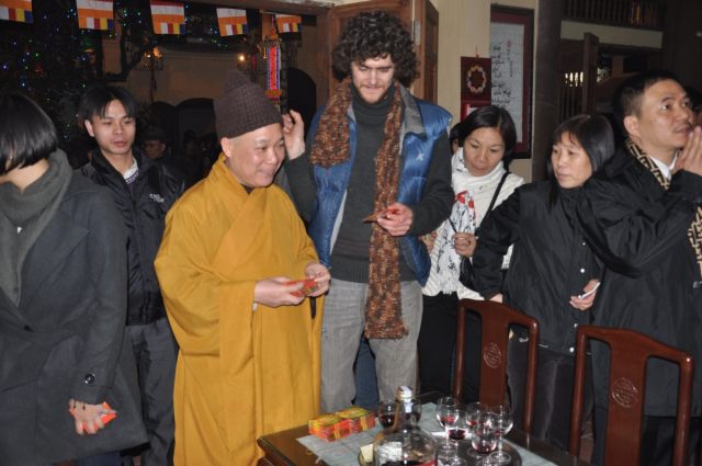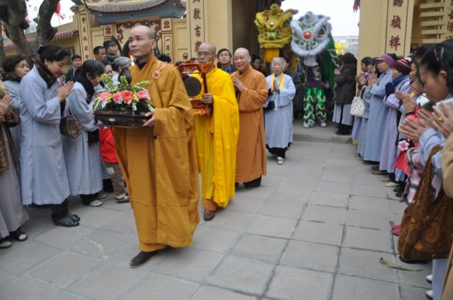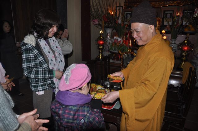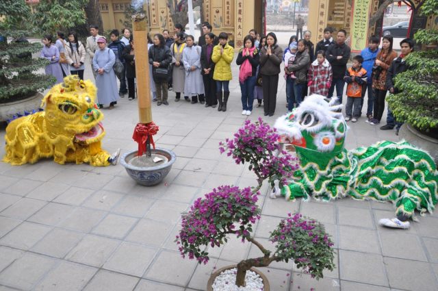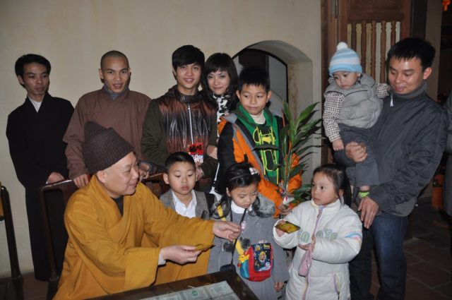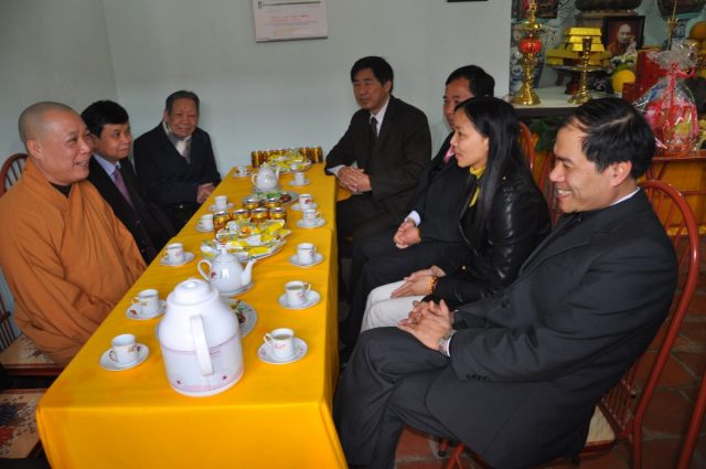 Sau thời khắc giao thừa, Thượng tọa đã đón các vị khách  đại diện chính quyền là ông Hoàng Công Khôi – Thành Ủy viên, Bí thư quận ủy quận Hoàn Kiếm; ông Vũ Văn Viện – Chủ tịch UBND quận Hoàn Kiếm đến chùa lễ Phật và chúc tết .