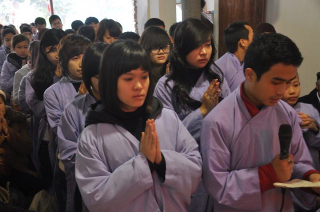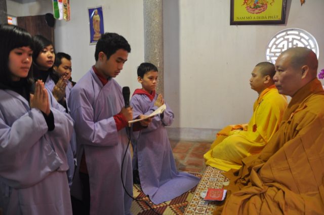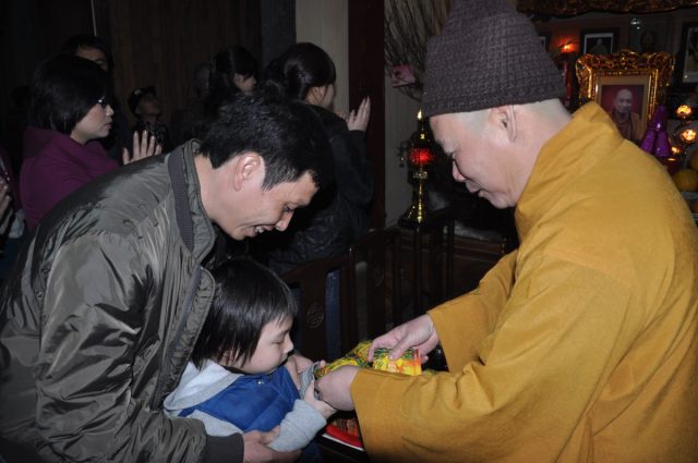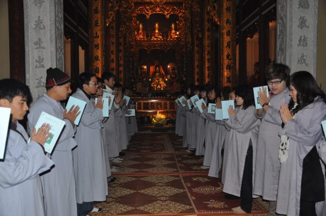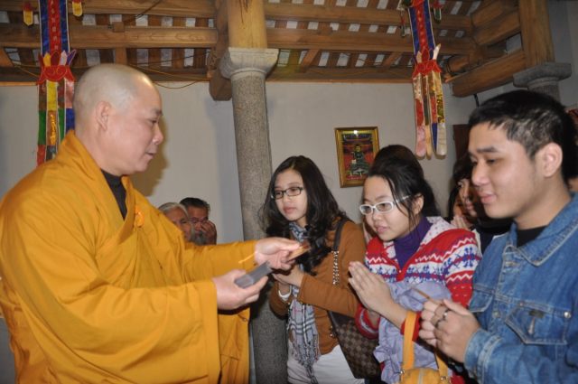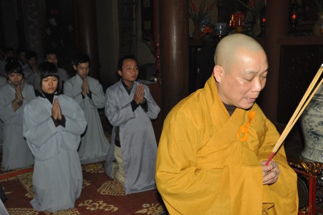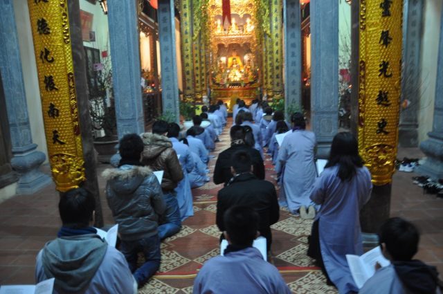Vào đêm giao thừa, trong không khí linh thiêng, hân hoan đó, tại chùa Lý Quốc Sư, Thượng tọa đã hướng dẫn các thành viên câu Lạc Bộ Thanh Niên Phật tử của chùa tụng thời kinh Phúc Đức cầu an đầu năm mới.
