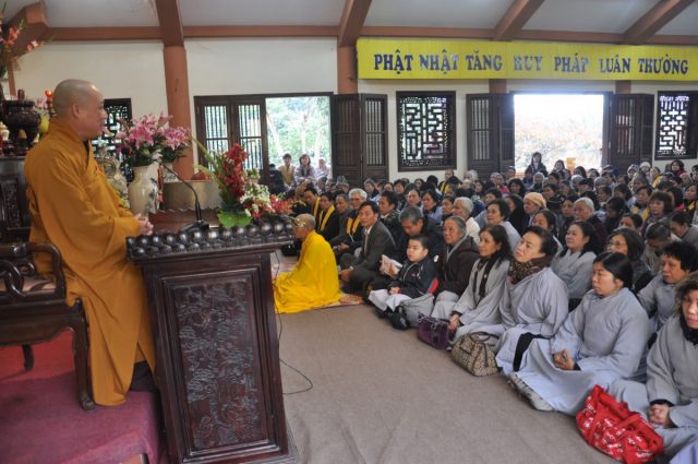 Tại đây, Thượng tọa đã khai thị những lời pháp đầu năm mới và nêu lên chủ đề tu tập, hoạt động Phật sự trong năm Tân Mão là: Bi – Trí – Dũng. Dù tu học hay làm Phật sự nào cũng luôn lấy tâm Từ bi làm đầu. Ngoài tâm Từ bi còn phải biết tu học theo chính pháp, phát khởi trí tuệ để đoạn trừ phiền não, vô minh. Và song song với hai đức tính đó, người học Phật còn phải luôn dũng mãnh, tinh tấn trên con đường đạo, trên con đường giác ngộ, giải thoát của Như Lai.