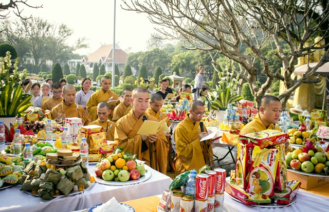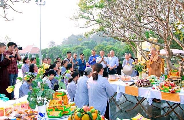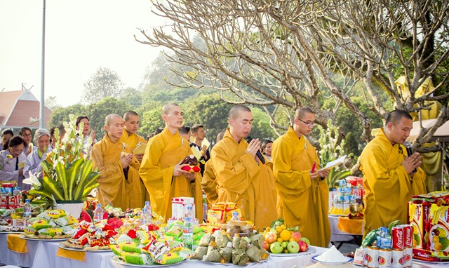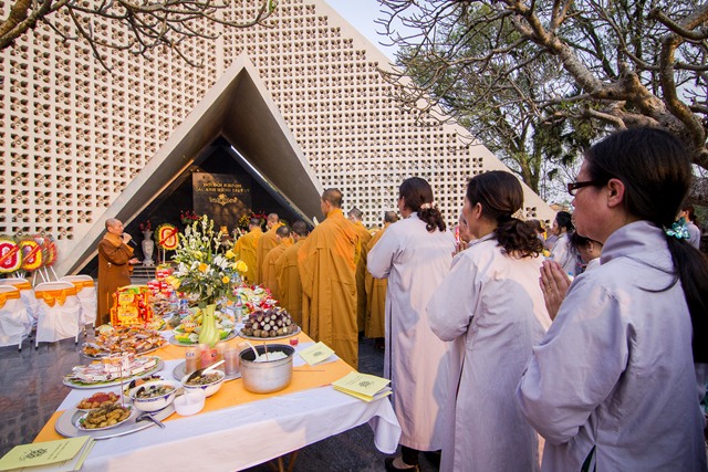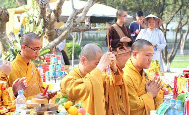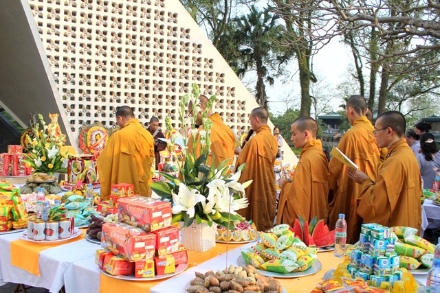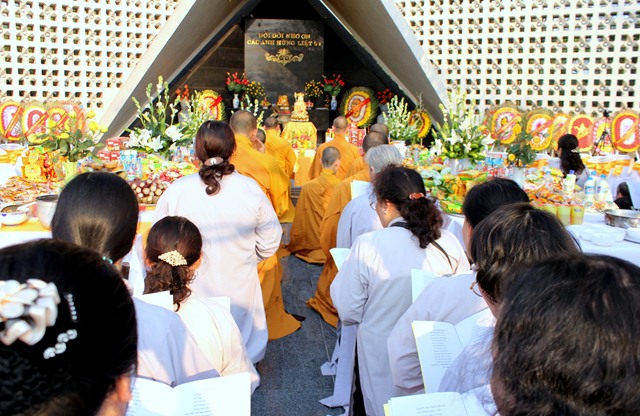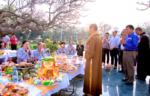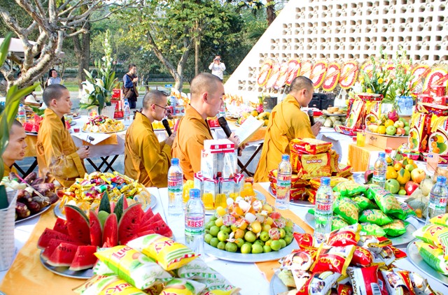 Và duyên trùng duyên, các Phật tử đã sắm dâng lễ vật cúng dường Mười Phương Tam Bảo, cầu siêu cho anh linh các anh hùng liệt sĩ đã hy sinh trong chiến dịch Điện Biên Phủ xưa và các thời kỳ kháng chiến tại Đài tưởng niệm.