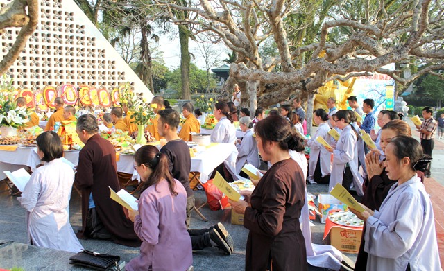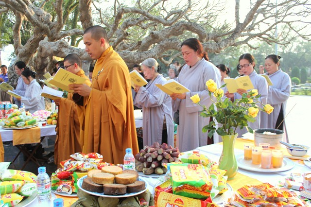 Sau đó, Chư tôn đức Tăng chùa Phật Quang đã xướng tụng nghi thức cầu siêu và đông đảo Phật tử tụng theo rất trang nghiêm.