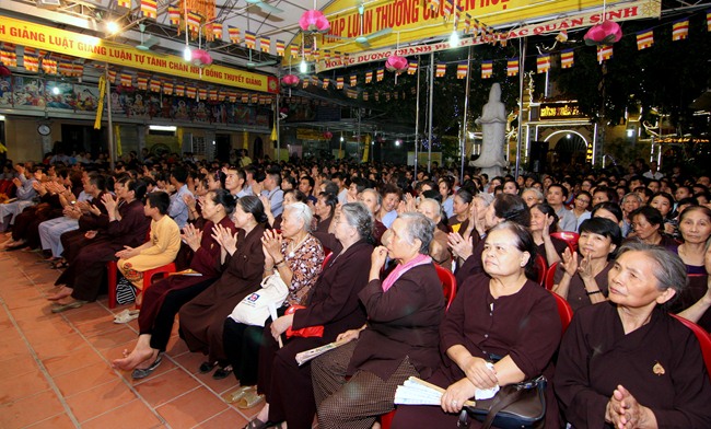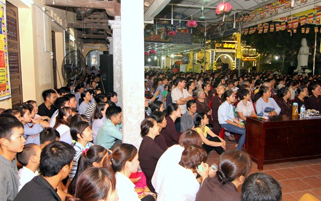 Mặc dù thời tiết hôm ấy, trời Hà Nội lúc xế chiều vẫn còn hâm hấp nóng, cộng với cái nóng của hơi người tỏa ra trong một hội chúng mấy nghìn người ngồi san sát nhau, khiến cho nhiệt độ nơi Giảng đường như tăng thêm, nhưng cả một Pháp hội vẫn im phăng phắc, mọi người chú ý lắng nghe từng câu, từng chữ khi Thượng tọa giảng dạy.