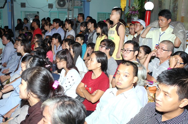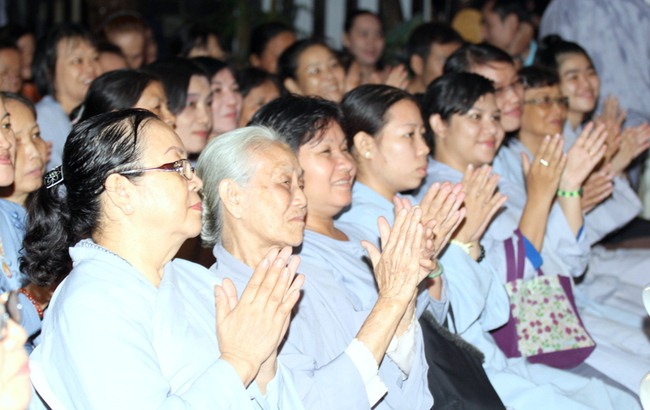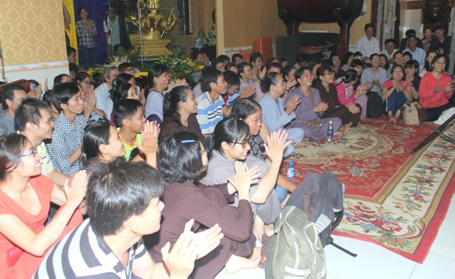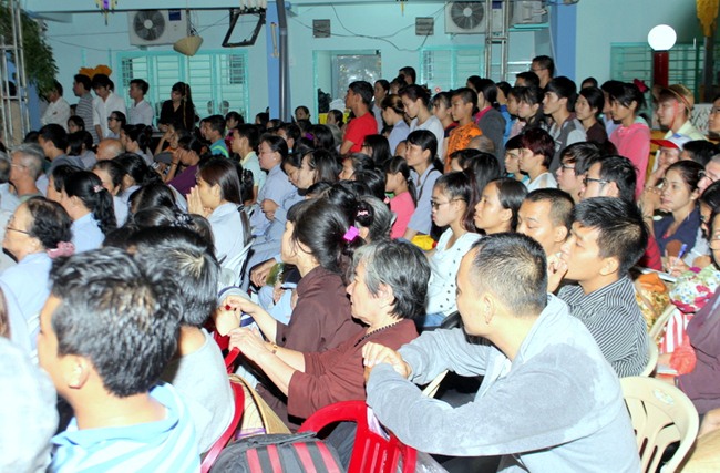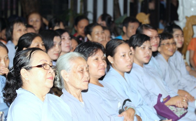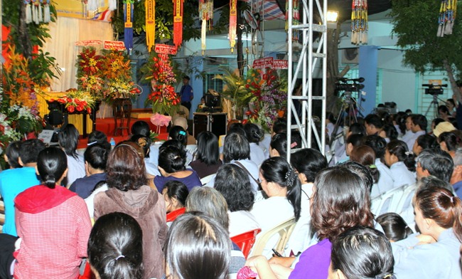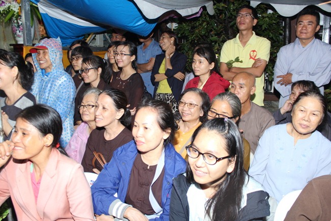 Pháp sự buổi chiều hôm đó gặp phải mưa to, kéo dài, nhưng vẫn không ngăn được bước chân của những người có tấm lòng yêu đạo đến chùa nghe Pháp.
