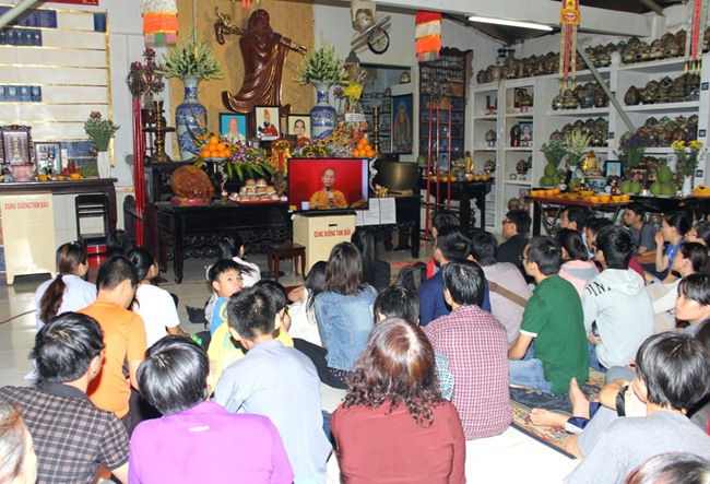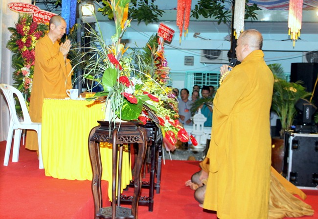 Tiếp đến, vào lúc 18h00” cùng ngày, TT Thích Chân Quang đăng đàn thuyết Pháp. Đi vào chương trình, ĐĐ Thích Từ Trí – Chánh thư ký Ban Trị Sự PG Q.Tân Bình đã có đôi lời cung kính vấn an sức khỏe Thượng tọa Giảng sư; đồng thời bày tỏ cái đạo tình Thầy trò khi Đại đức từng là học trò của Thượng tọa dưới mái trường Phật học Tổ đình Giác Lâm.
