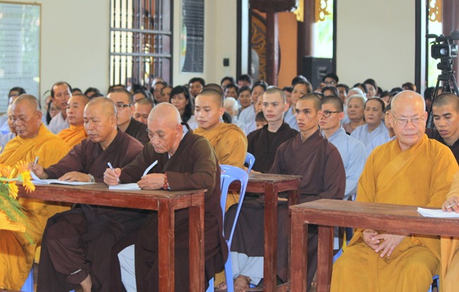 Buổi Pháp thoại có sự chứng minh tham dự của Chư tôn đức Hòa thượng lãnh đạo BTS GHPGVN tại huyện Tân Thành, cùng 50 hành giả hiện An cư Kiết hạ và đông đảo phật tử từ các tỉnh thành về cúng dường trường hạ và thính Pháp.