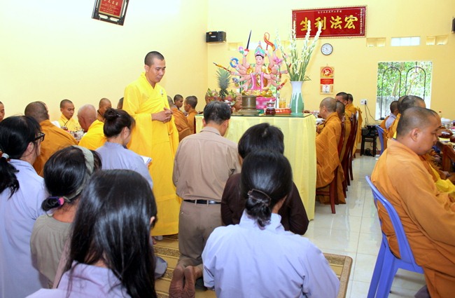 Hiện tại, An cư Kiết hạ là thời gian để tăng ni nỗ lực tu tập, thúc liễn thân tâm, trau dồi giới – định – tuệ. Đây cũng là cơ hội để hàng phật tử tại gia gieo trồng phước đức.Với ý nghĩa quan trọng và thiết thực đó, phật tử Thiện Tâm – Thư ký Tổng Đạo Tràng Phật Quang – Chúng trưởng Đạo tràng Phật Thịnh (TP.HCM) đã thay mặt các huynh đệ dâng lời tác bạch cúng dường trường hạ.