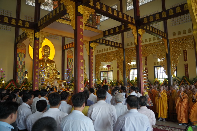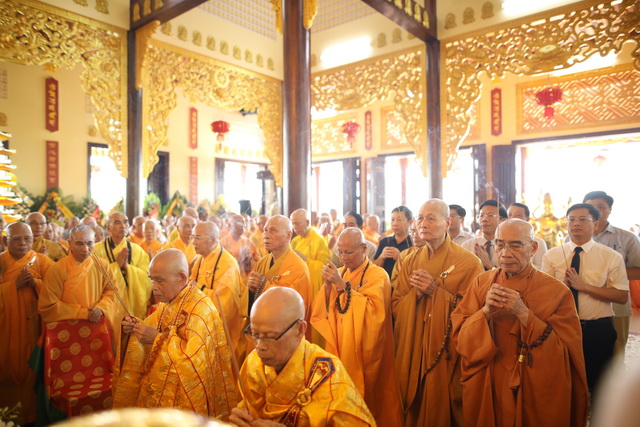 Trong không khí trang nghiêm thành kính, 3 hồi chuông trống Bát nhã được cử hành; chư Tôn Giáo phẩm Chứng minh đã niêm hương bạch Phật, cử hành nghi lễ cầu nguyện, quý lãnh đạo chính quyền đồng dâng hương cầu nguyện, nguyện cầu cho tổ quốc mãi vinh quang, thế giới hòa bình và chúng sanh an lạc.