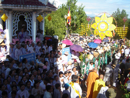 Chị Hoa, Một Phật tử về từ Viên Chăn Lào cho biết: “Năm nay khâu trang hoàng cờ, hoa, đèn, băng rôn kéo dài từ hai cửa ngỏ là Lăng Khải Định và Cầu Châu Ê kéo dài đến chân núi Tứ Tượng và khu vực Tượng Đài rất đẹp mắt, cùng với tăng cường thiết trí ánh sáng tạo cho khu vực lễ hội rực rỡ lung linh hơn nhiều.”