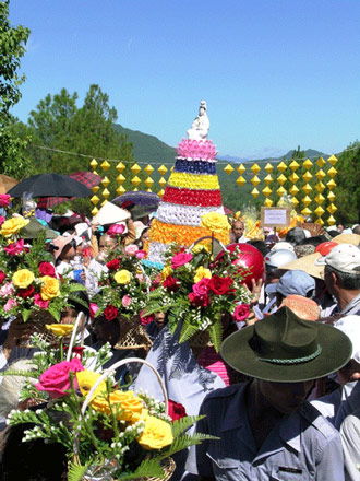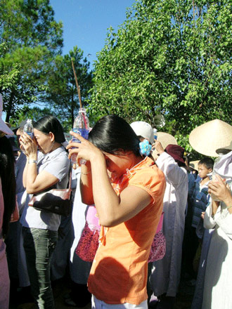 Những khách chiêm bái, dự lễ đều rất tâm thành, mọi người tay chắp tay, và hương và nước dâng lên mẹ hiền Quán Thế Âm để cầu xin sự bình an trong cuộc sống.