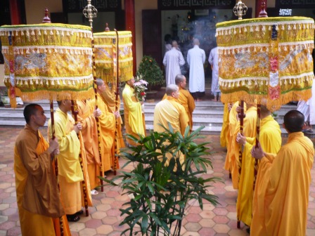 Nhị vị Thượng tọa Dẫn thỉnh sư cùng giới tử tác bạch cung thỉnh sư