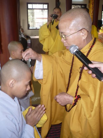 Hòa thượng Yết ma đang làm lễ Thế phát cho giới tử