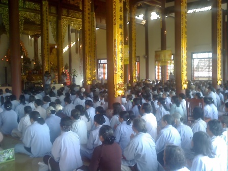 Hòa thượng Thích Khế Chơn khai đạo giới tử cho Phật tử tại gia phát nguyện thọ trì Thập thiện và Bồ Tát giới tại gia