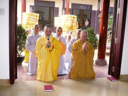 Buổi lễ diễn ra trang nghiêm thanh tịnh dưới sự chứng minh và truyền trao giới pháp của chư tôn thiền đức.