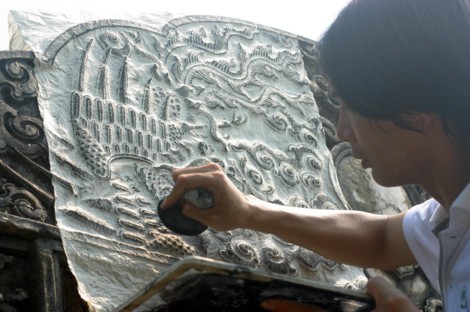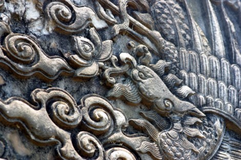 Một hình ảnh về hoa văn thời chúa Nguyễn khắc trên đá