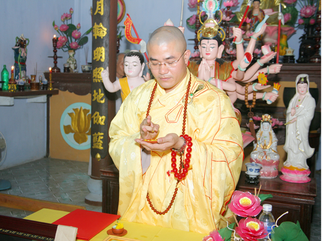 Đại đức chứng minh niêm hương cử hành nghi thức cầu nguyện