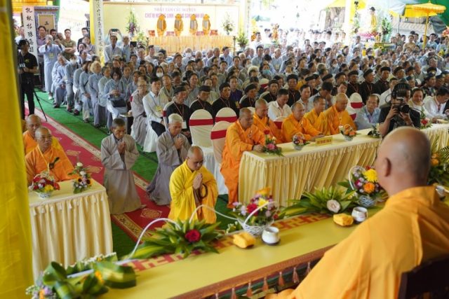 Tại buổi lễ, chư Tôn thiền đức cùng quý quan khách đã cắt băng khánh thành và cử hành nghi lễ cầu nguyện.