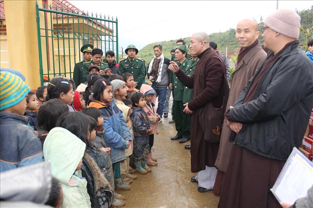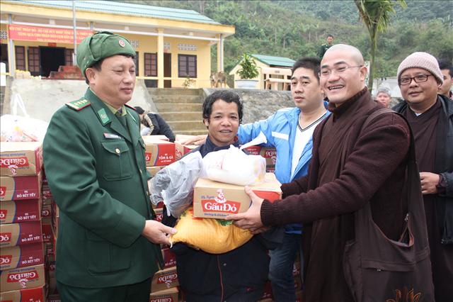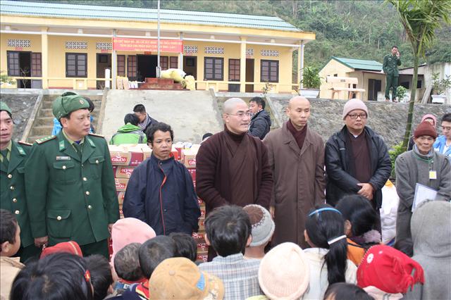 Phái đoàn Ban Trị sự GHPGVN huyện A Lưới có Đại đức Thích Tâm Phương, Trưởng Ban Trị sự; Đại đức Thích Tín Nhơn, Phó Trưởng Ban Trị sự cùng quý Đạo hữu Phật tử Nhóm Từ thiện Nguyên Quang tại TP. HCM. Với số lượng 150 phần quà (hơn 37 triệu đồng), mỗi phần quà gồm có: 10kg gạo, 1 thùng mì ăn liền, 1 kg bột ngọt, 1kg đường, 1 chai dầu, 1kg muối, 1 bịch áo quần, (trị giá 250.000 đồng/1 phần) cho các hộ nghèo Đồng bào Dân tộc thiểu số tại 2 bản nói trên, nhằm chia sẻ phần nào khó khăn của đồng bào tại nước bạn, góp phần vào sự gắn kết tình hữu nghị anh em, không ngừng phát triển tốt đẹp của hai nước Việt – Lào nói chung và địa bàn huyện A Lưới nói riêng mãi mãi xanh tươi đời đời bền vững.