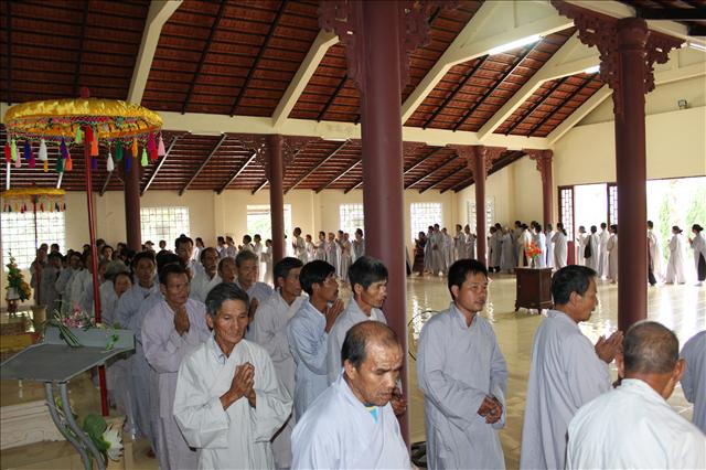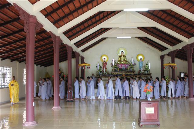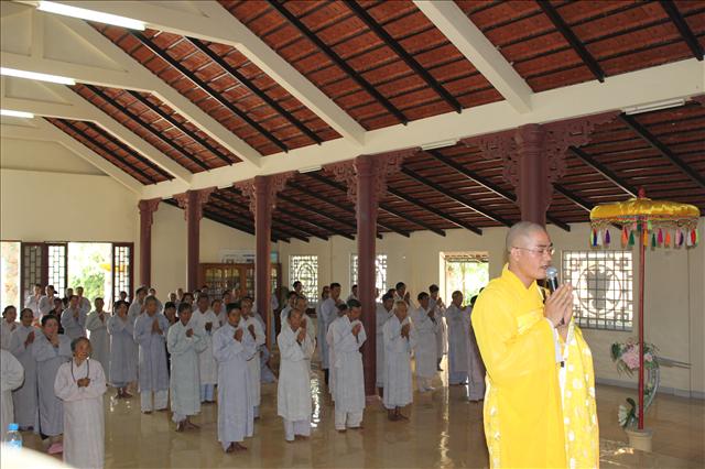 Trước khi chính thức vào khóa tu 1 ngày an lạc, ĐĐ. Thích Tâm Phương – Trưởng BTC khóa tu đã truyền Bát quan trai giới cho hàng Phật tử tại gia. Đó chính là tám điều mà Phật tử tại gia phải áp dụng cho ngày tu tập hôm nay: Không sát sinh, không trộm cướp, không tà dâm, không nói dối, không uống rượu, không trang điểm – thoa dầu thơm – múa hát hay xem múa hát, không nằm giường cao, không ăn quá giờ ngọ.