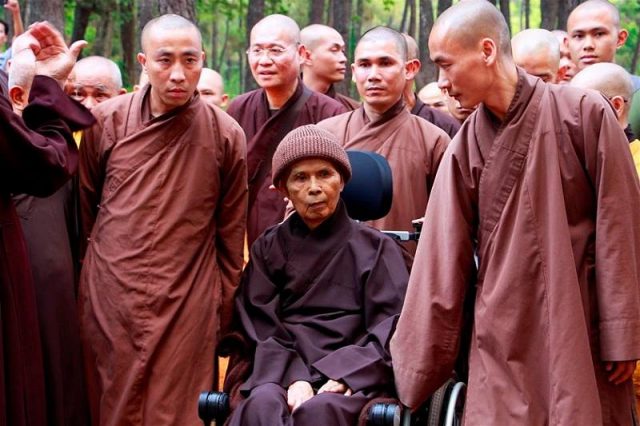 Cung đón Thầy Nhất Hạnh tại chùa Từ Hiếu chiều nay có Hòa thượng Thích Giác Quang, Hòa thượngThích Huệ Ấn, Hòa thượng Thích Đức Thanh, Hòa thượng Thích Thường Chiếu, Thượng tọa Thích Trí Tựu, Thượng tọa Thích Chí Thắng, Thượng tọa Thích Thanh Huân và chư tôn đức trong sơn môn cùng chư tăng, ni và nhiều Phật tử.