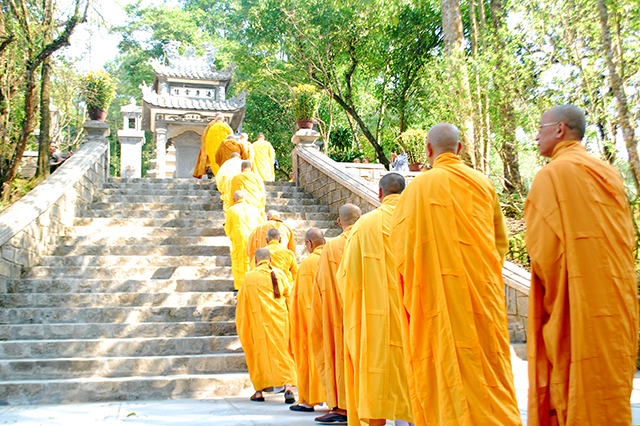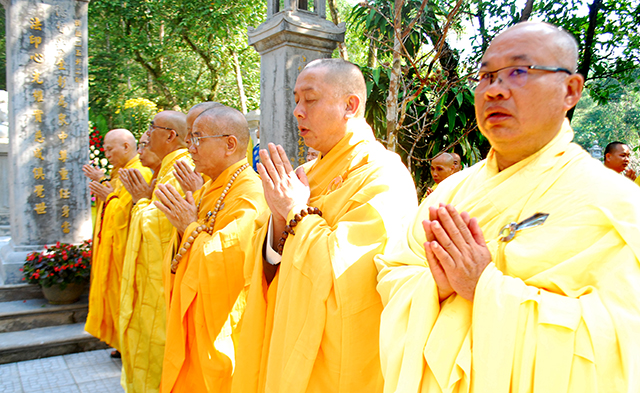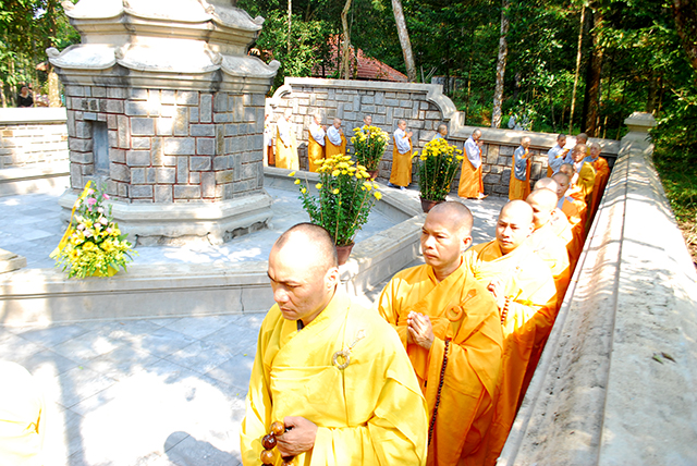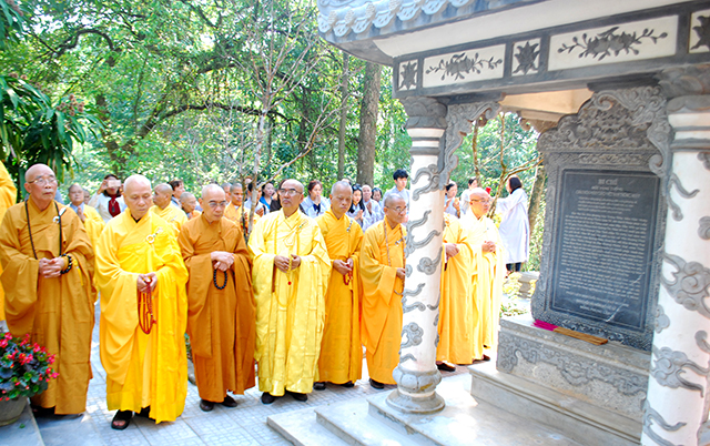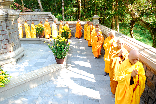 Trước Bảo tháp uy nghi, trong khí thiêng thiền vị , chư Tăng môn đồ đã ôn lại hành trạng cuộc đời và đạo nghiệp của Cố Đệ nhị Tăng Thống .