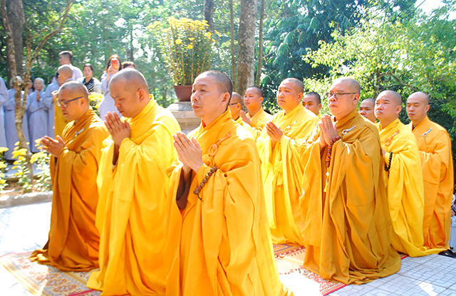 Trước Bảo tháp uy nghi, trong khí thiêng thiền vị , chư Tăng môn đồ đã ôn lại hành trạng cuộc đời và đạo nghiệp của Cố Đệ nhị Tăng Thống .