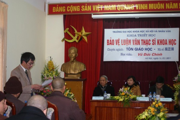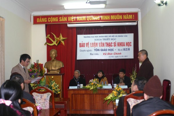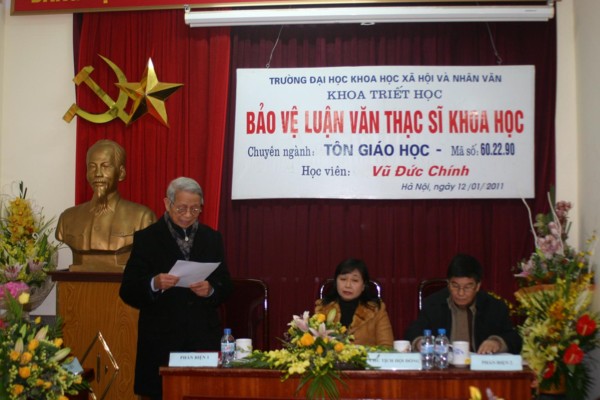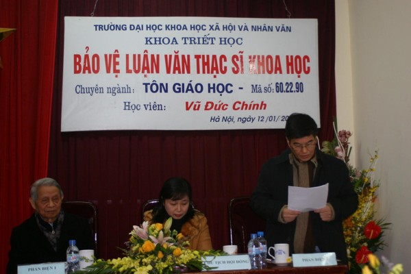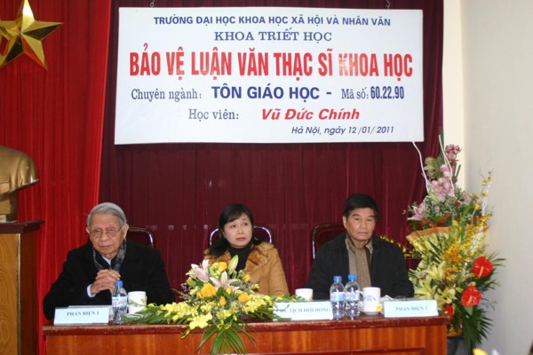 Hội đồng khoa học chấm luận văn thạc sỹ do Phó giáo sư, Tiến sỹ Nguyễn Thúy Vân – Chủ nhiệm Khoa Triết học, Trường Đại học KHXHNV làm chủ tịch. Các thành viên gồm Giáo sư, Tiến sỹ Nguyễn Tài Thư – Viện Triết học; Giáo sư, Tiến sỹ Đỗ Quang Hưng – Trường ĐHKHXHNV; Phó Giáo sư, Tiến sỹ Nguyễn Anh Tuấn – Trường ĐHKHXHNV; Giáo sư, Tiến sỹ Nguyễn Hùng Hậu- Học viện CTQGHCM.