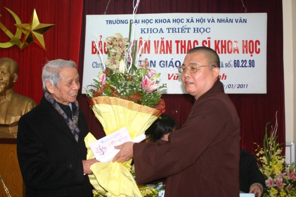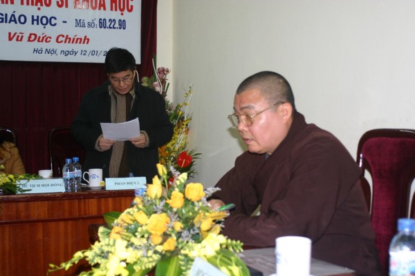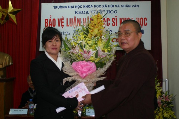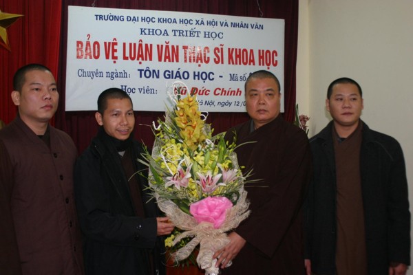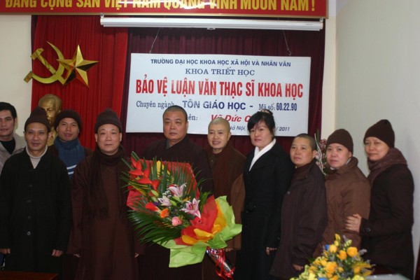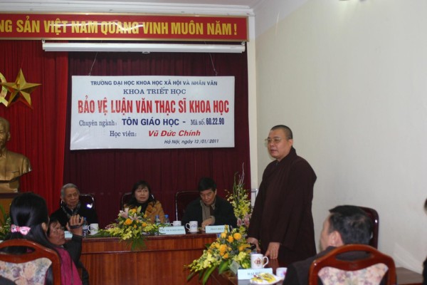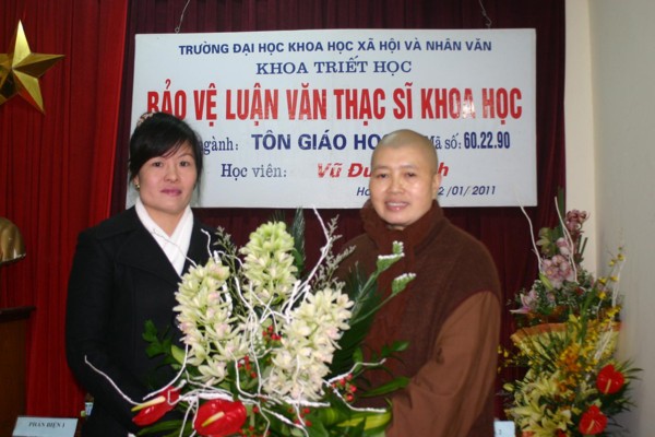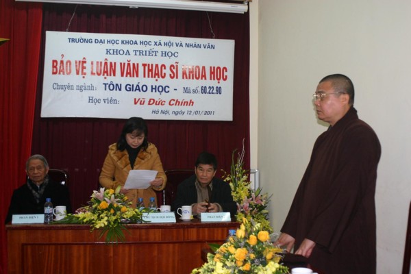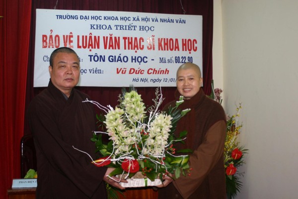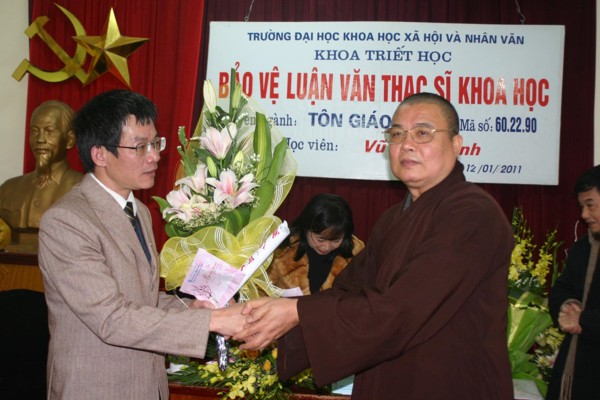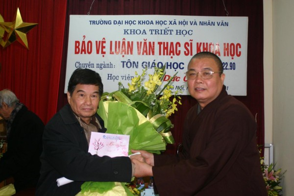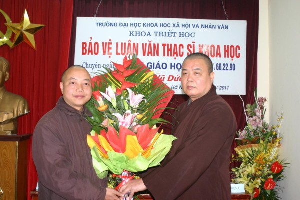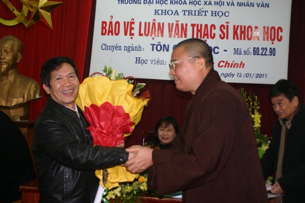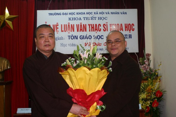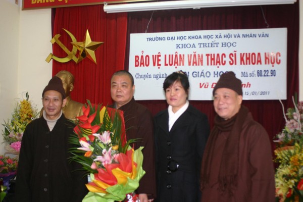 Quang lâm chứng minh buổi bảo vệ luận văn thạc sỹ có sự hiện diện của Thượng tọa Thích Bảo Nghiêm – Phó chủ tịch HĐTW GHPGVN, Trưởng ban Hoằng pháp TW, Cư sỹ Lương Gia Tĩnh – Ủy viên HĐTS TWGHPGVN, Phó Viện trưởng Học viện Phật Giáo Việt Nam tại Hà Nội.