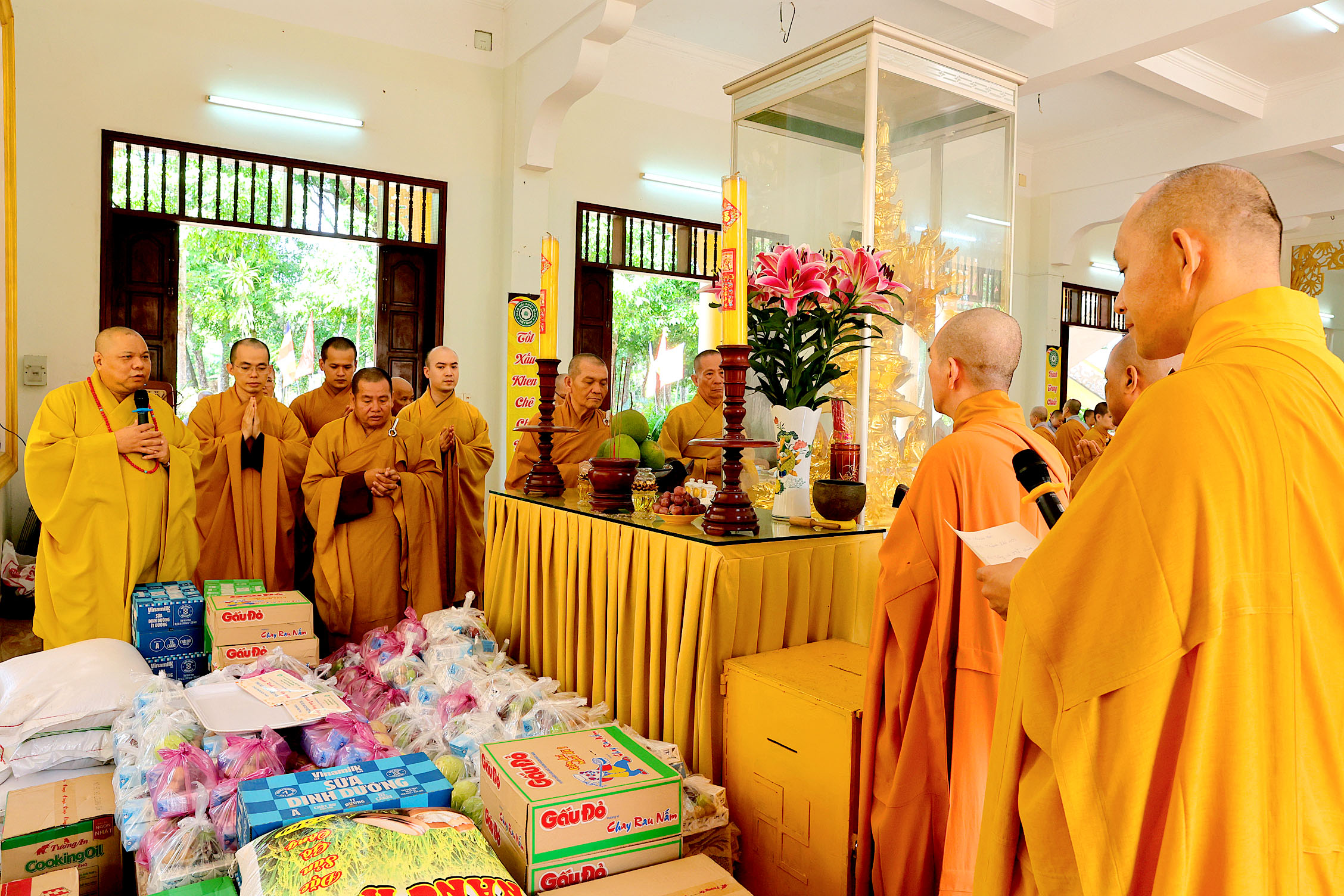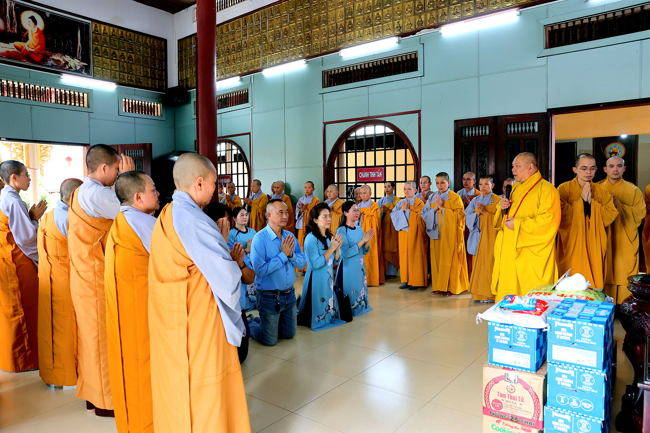 Dù năm nay kinh tế còn nhiều khó khăn, đoàn vẫn dâng cúng phẩm vật thiết thực và tịnh tài đến tận tay quý Tăng Ni, thể hiện trọn vẹn tâm thành hộ trì Tam Bảo.
