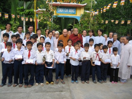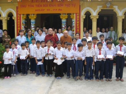 Đồng thời, Thượng tọa cũng trao 28 học bổng cho các em học sinh nghèo hiếu học tại địa phương.
