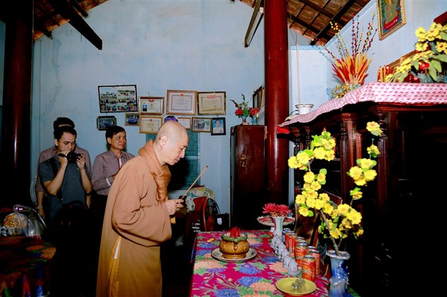 Đúng 8h00”, Đoàn xuất phát tại Thiền Thất Bảo Quang, rồi đến xã Trung Lập Thượng. Tại đây, dưới sự hướng dẫn của chính quyền địa phương, Đoàn lần lượt đến thăm hỏi và tặng quà cho 4 gia đình Mẹ VNAH. Trong dịp này, mỗi Mẹ được nhận 6 triệu đồng trong quý I (tháng 1+2+3) và một phần quà tết 500.000 VNĐ. Tổng chi phí cho hoạt động này là 26 triệu đồng.