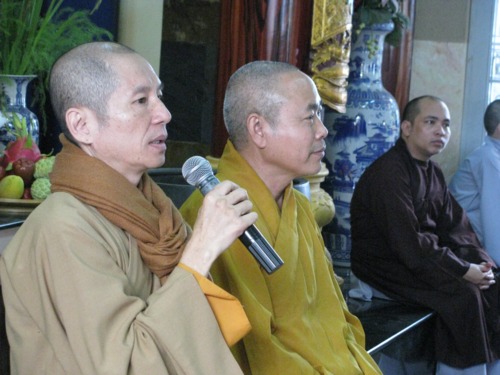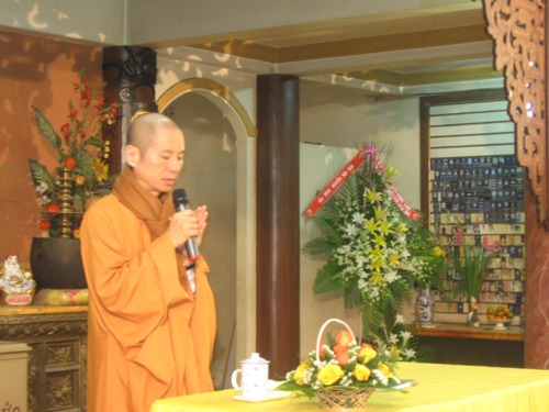 Thích Viên Giác điều hàng buổi thi trắc nghiệm Phật pháp trong lễ tổng kết