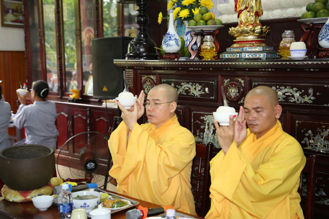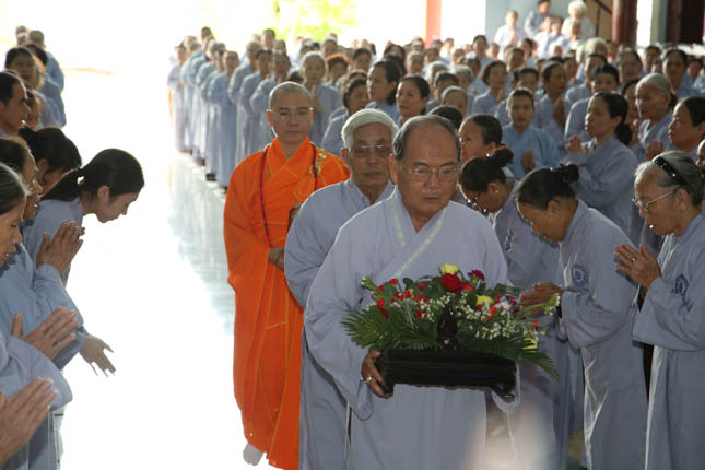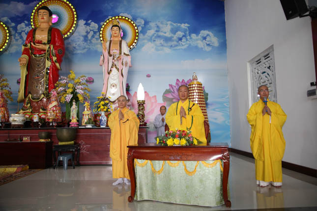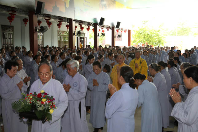 ĐĐ. Thích Thông Đạo – Ủy viên HĐTS GHPGVN, Phó ban kiêm Chánh thư ký BTS GHPGVN Tp Đà Nẵng, Trú trì chùa Bà Đa đã quang lâm truyền giới Bát quan trai cho các giới tử tham dự khóa tu.