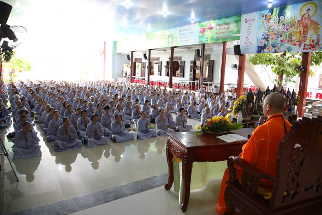 Sau đó, TT. Thích Thiện Thuận – Ủy viên Ban hoằng pháp TƯ GHPGVN, Phó trưởng BTS kiêm Trưởng ban hoằng pháp GHPGVN tỉnh Bà Rịa Vũng Tàu đã quang lâm chia sẻ pháp thoại cùng các giới tử tham dự khóa tu với chủ đề ” Tình người Phật tử”.
