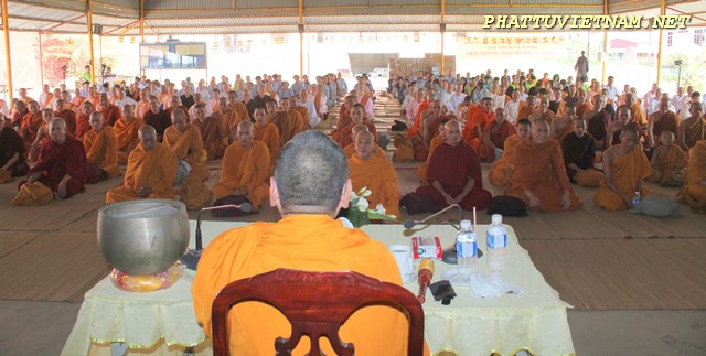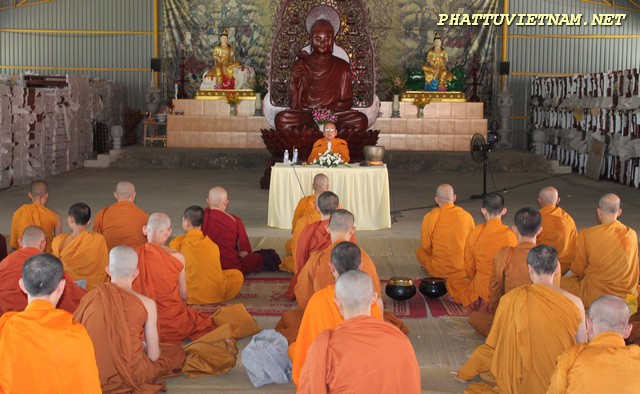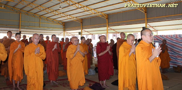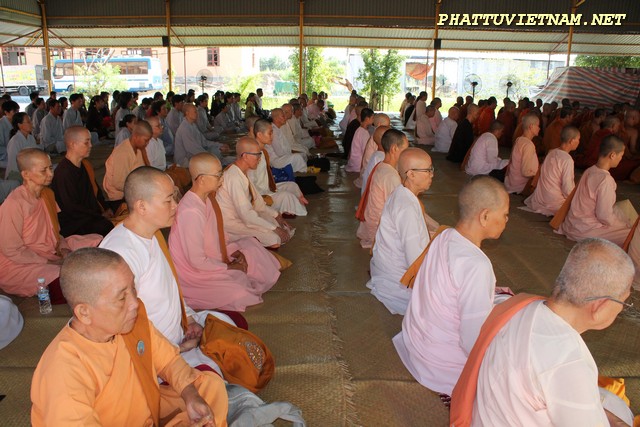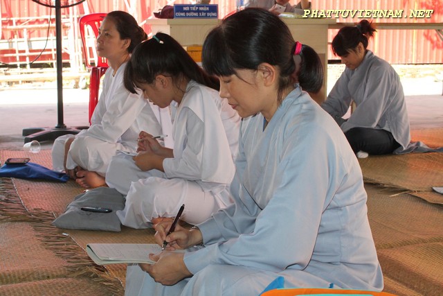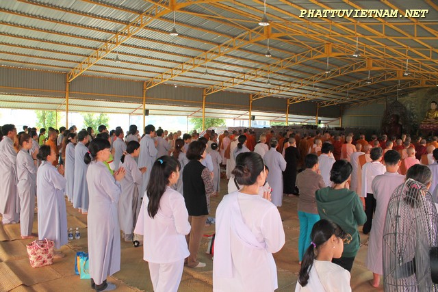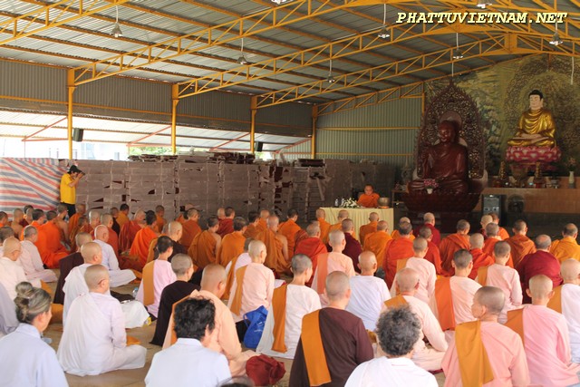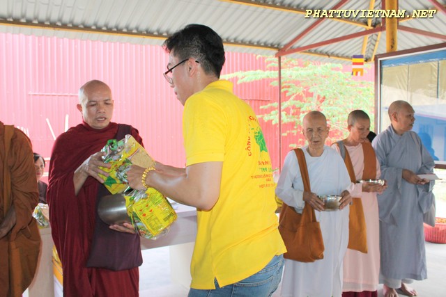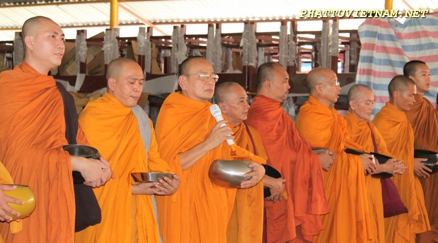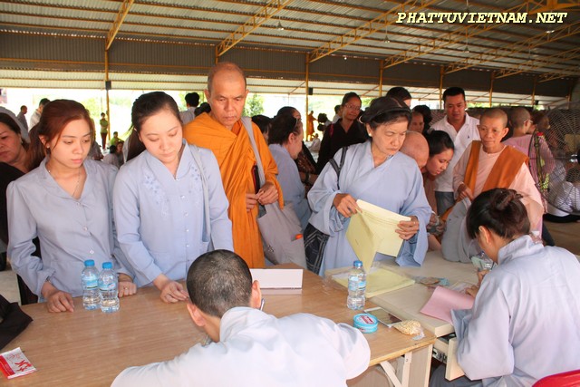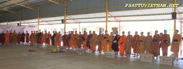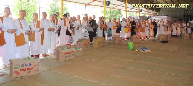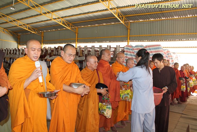 Sau thời lắng nghe hương vị pháp, chư Tăng – Tu Nữ cử hành nghi thức khất thực do Phật tử phát tâm cúng dường. Nhân dịp này, tứ chúng đồng lòng quyên góp tịnh tài tịnh vật (33.497.000 đ + 10 tấn xi măng) ủng hộ xây dựng HVPGVN với ước nguyện sớm hoàn thành.