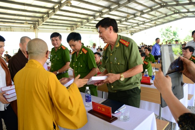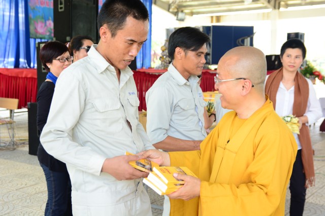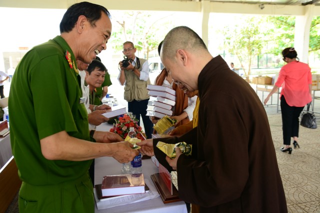 Cũng nhân dịp này Thượng tọa cũng đã trao tặng cho các cán bộ quản lý và các học viên 700 cuốn kinh sách gồm:423 Lời vàng Phật dậy, Kinh Phật cho người tại gia và chuỗi hạt.