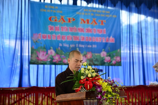 ĐĐ. Thích Thông Đạo, ủy viên Hội đồng Trị sự TW GHPGVN, Phó Trưởng ban Trị sự kiêm chánh thư ký GHPGVN TP. Đà Nẵng cũng đã có đôi lời phát biểu: “Chính tệ nạn xã hội đã làm cho các bạn tự đánh mất chính mình, ảnh hưởng đến gia đình và xã hội. Nhưng nói như thế không phải là các bạn đã mất tất cả. Các bạn vẫn còn có rất nhiều cơ hội để tự sửa đổi bản thân mình, trở về hòa nhập với gia đình, cộng đồng. Gia đình các bạn vẫn trông ngóng và sẵn sàng giang tay đón các bạn trở về nếu các bạn thực sự thay đổi, tránh xa các tệ nạn. Tất cả là ở các bạn có nghị lực, có muốn thay đổi hay không”. Nhân dịp này ĐĐ. Thích Thông Đạo cũng trao tặng các dụng cụ tập luyện thể thao cho Trung tâm trị giá 50 triệu đồng.