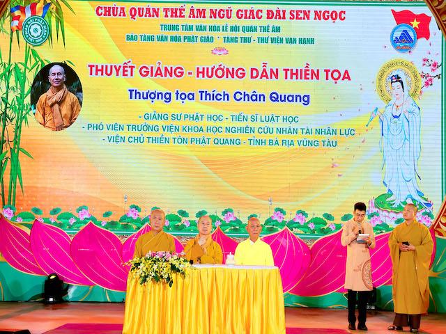 Mở đầu, HT Thích Huệ Vinh chia sẻ về nguồn gốc xuất hiện của Lễ hội Quán Thế Âm. Đồng thời nhấn mạnh chùa Quan Thế Âm đã có văn hóa, tâm linh, giờ cần nhất là tập trung vào việc đưa phương pháp tu tập vào để khai mở trí tuệ cho đại chúng. Mà nói về đạo Phật, phương pháp tu tập quan trọng nhất chính là Thiền bởi đó là cốt lỗi của đạo Phật.