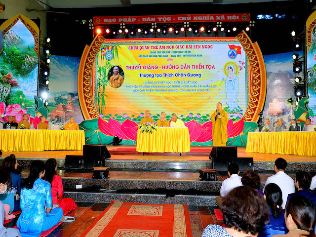 Vừa qua, trong chuỗi hoạt động của Lễ hội Quán Thế Âm diễn ra từ ngày 8 -10/03/2023 (nhằm ngày 17/02 – 19/02 Âm lịch) tại chùa Quan Thế Âm (đường Sư Vạn Hạnh, phường Hòa Hải, quận Ngũ Hành Sơn, TP Đà Nẵng), chiều ngày 10/03/2023 (19/02 âm lịch), nhận lời mời của HT Thích Huệ Vinh – Phó Ban Trị sự kiêm Trưởng ban Tăng sự GHPGVN TP Đà Nẵng, Phó Ban tổ chức Lễ Hội Quán Thế Âm Ngũ Hành Sơn năm 2023, TT Thích Chân Quang – Giảng sư Phật học, Tiến sĩ Luật học, Trụ trì Thiền Tôn Phật Quang (BRVT) đã quang lâm hướng dẫn Thiền và thuyết giảng cho hàng nghìn Phật tử cùng khách hành hương tham dự Lễ hội.