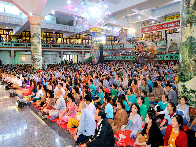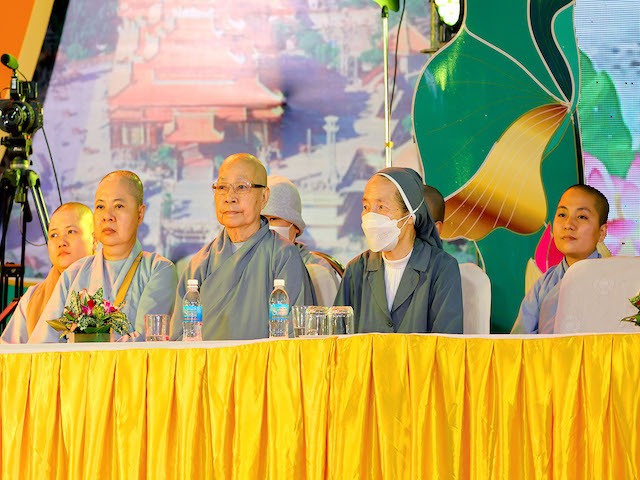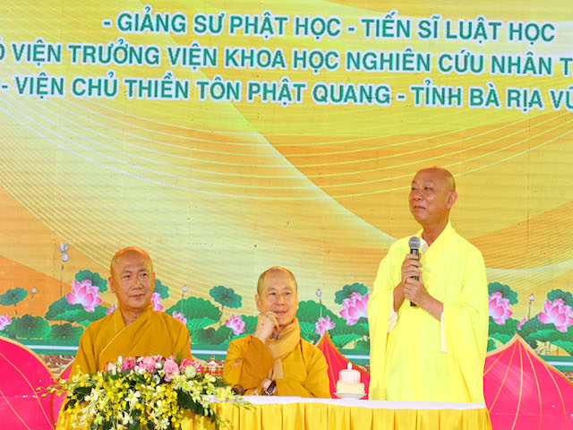 Tiếp đến, TT TS Thích Chân Quang chia sẻ Pháp thoại với sự tham dự và chứng minh của: HT Thích Huệ Vinh – Phó Ban tổ chức Lễ hội Quán Thế Âm, trụ trì chùa Quán Thế Âm (TP Đà Nẵng); TT. Thích Giác Minh – Trụ trì chùa Phong Hòa (tỉnh Đồng Tháp); TT. Thích Nhuận Trí – Phó Ban Trị Sự GHPGVN (tỉnh BRVT); Ni trưởng Thích Nữ Từ Nhu – trụ trì chùa Từ Đức (Thừa Thiên Huế); Sơ Maria Hòa – Dòng thánh Phaolo (TP. Đà Nẵng); cùng chư Tôn đức Tăng Ni trong và ngoài tỉnh. Ngoài ra còn có đại diện các Ban điều hành Đạo tràng và Chúng thanh niên Phật tử Phật Quang đến từ nhiều tỉnh thành trên cả nước, cùng hàng nghìn Phật tử, các Chúng thanh niên, sinh viên trên khắp mọi miền tổ quốc về tham dự và công quả.