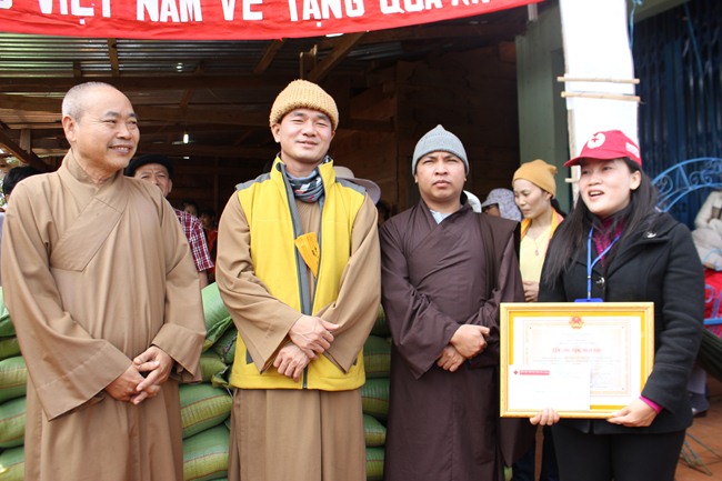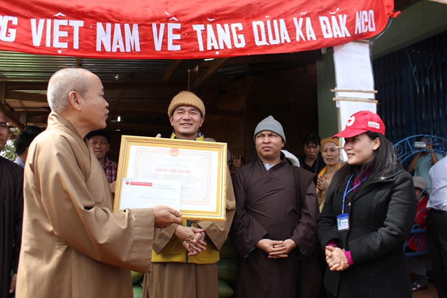 Theo đó, Hội Chữ Thập Đỏ Tỉnh và Ban Trị Sự Giáo Hội Phật Giáo Tỉnh đã tiếp xúc và đón đoàn một cách thân tình dưới sự hướng dẫn và trợ giúp của ĐĐ. Thích Quảng Hiền – Uỷ viên Hội đồng trị sự T.Ư, Phó Ban thường trực BTSGHPGVN tỉnh Đak Nông. Và cho biết đây là những phần quà rất có ý nghĩa khi những ngày cuối năm đang đến gần đồng bào Dân tộc lại đang rất thiếu thốn.
