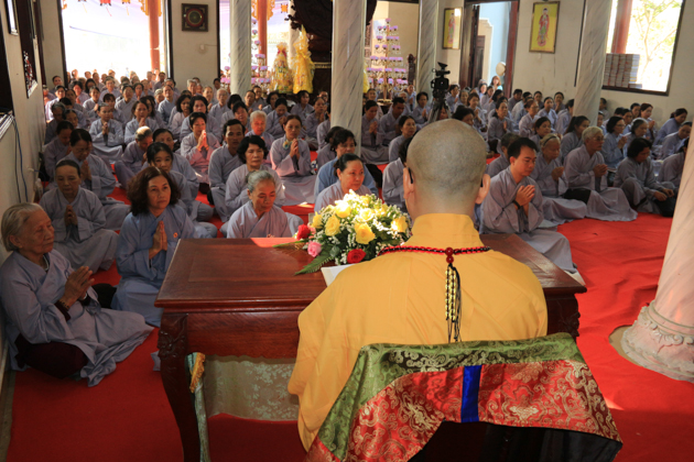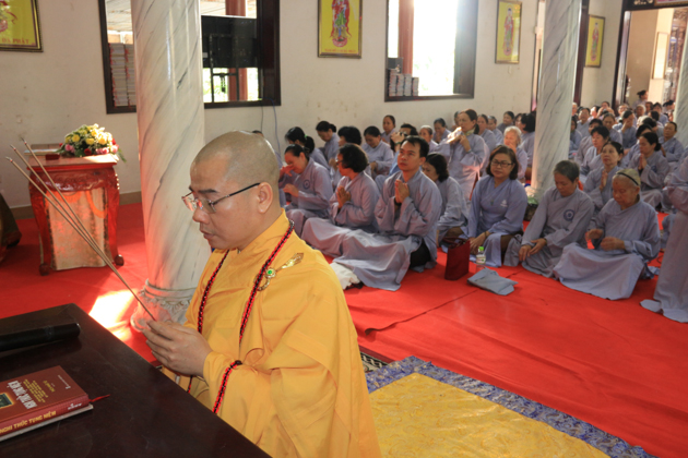 Trong khuôn khổ của khóa tu Một ngày An Lạc, ĐĐ. Thích Thông Đạo – UV HĐTS GHPGVN, Phó ban kiêm Chánh thư ký BTS GHPGVN Tp Đà Nẵng, Trú trì chùa Bà Đa đã quang lâm truyền Bát Quan Trai giới cho các giới tử tham dự khóa tu.