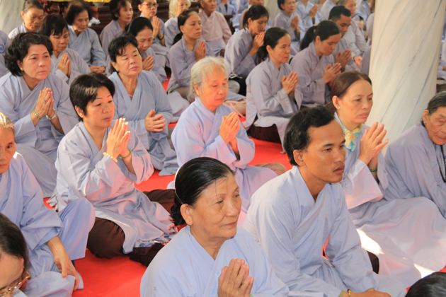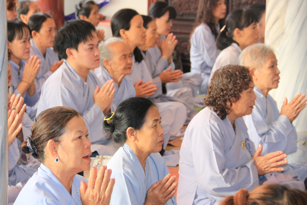 Buổi chiều cùng ngày là thời khóa tụng kinh Vô lượng Thọ và niệm Phật trước khi kết thúc một ngày tu học đầy an lạc và hạnh phúc.