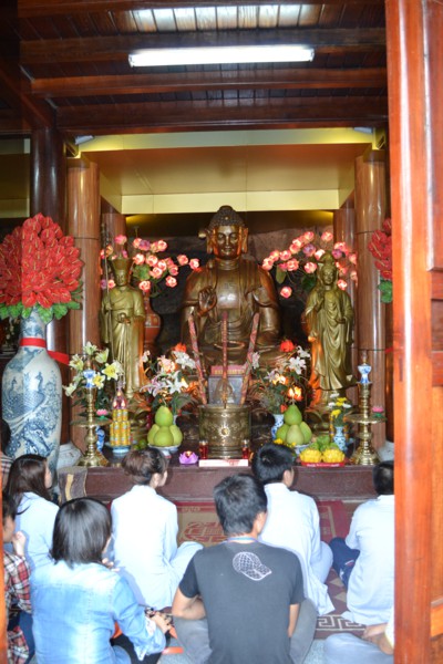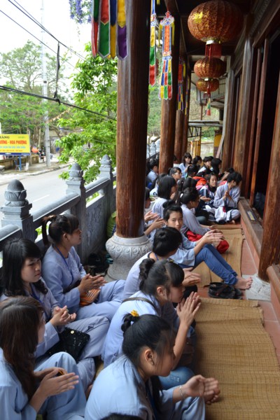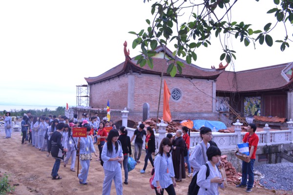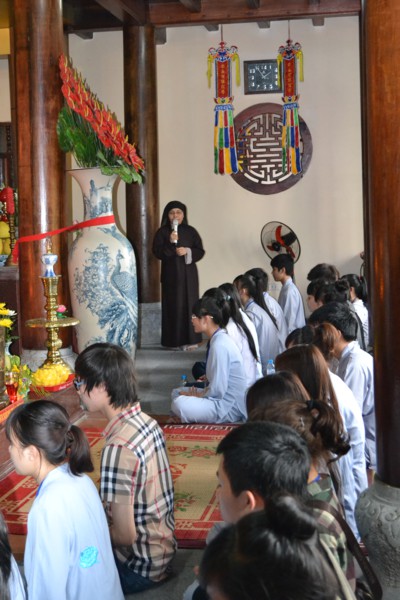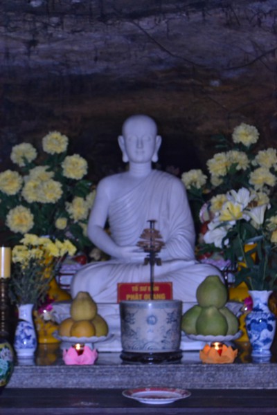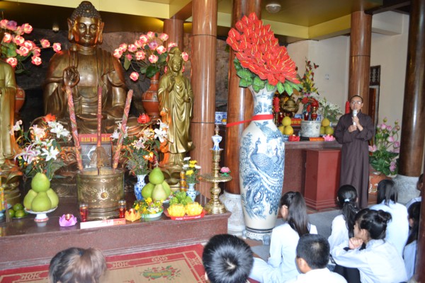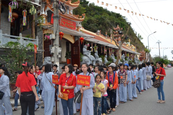 Địa đến thứ hai của cuộc hành trình đó là chùa Hang ( Cốc tự). Ngôi chùa được nằm ở bờ biển khu I, phường Vạn Sơn, quận Đồ Sơn. Ở đây, các em đã được ĐĐ. Thích Giác Hiệu giới thiệu lịch sử ngôi chùa này; Các em đã được ôn lại câu chuyện truyền thuyết về Chử Đồng Tử và Tiên Dung. Ngoài ra, các em còn được biết thêm về một nhà Sư đã có công rất lớn trong việc truyền bá đạo Phật vào VN. Đó là tổ sư Phật Quang hay còn gọi là tổ sư Bần, Ngài đã viên tịch tại chính ngôi chùa Hang này. Các em còn được ĐĐ. Thích Giác Hiệu chia sẻ một bài Pháp thoại ngắn về Thiểu dục chi túc ( ít ham muốn và biết đủ) về Tam quy, thuyết nhân quả. ĐĐ đã khuyên các em phải biết yêu thương cha mẹ, yêu thương mọị người, đồng thời ĐĐ cũng sách tấn các em phải học hành chăm chỉ, nghe lời thầy cô, ông bà, cha mẹ. Cũng tại chùa Hang, các em cũng được chia sẻ kiến thức Phật giáo cùng chư tôn đức. Trước khi dời chùa, các em còn được ĐĐ. Thích Giác Hiệu tặng quà lưu niệm, sách Phật giáo. Các em dời chùa với niềm luyến tiếc và mong muốn được trở lại chùa vào một ngày gần nhất.