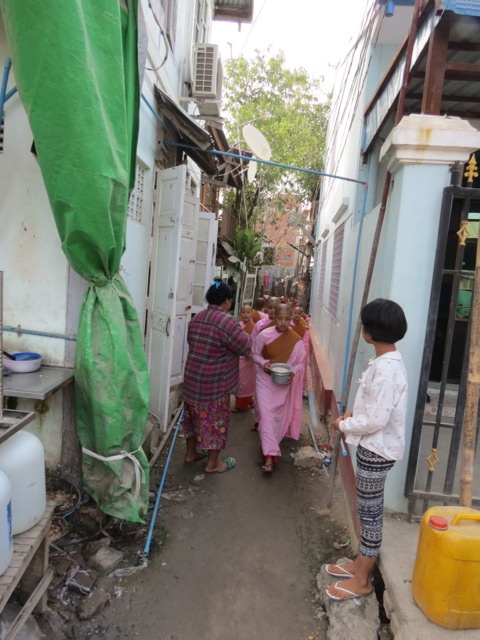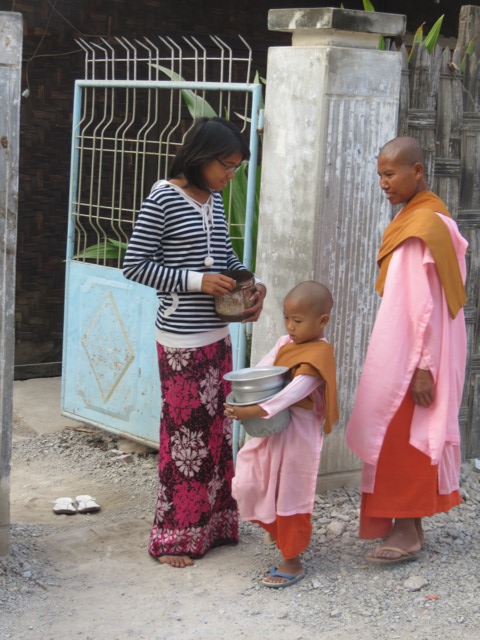 Tôi đã dành cả tiếng đồng hồ để đi theo 1 đoàn các tu nữ tý hon tại Mandalay. Các cô bé còn rất bé đã xuất gia và mặc những bộ áo tràng màu hồng thật đáng yêu, thật đẹp. Họ vui tươi ca hát và tụng kinh. Họ đi khất thực trong các khu dân cư. Tôi đi theo và ngẩn người ra. Ước gì mình được như họ. Đẹp và đáng yêu lắm. Tu từ nhỏ vậy thì lớn lên sẽ là những người rất tốt rồi.