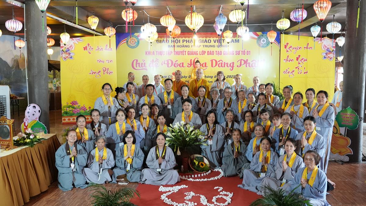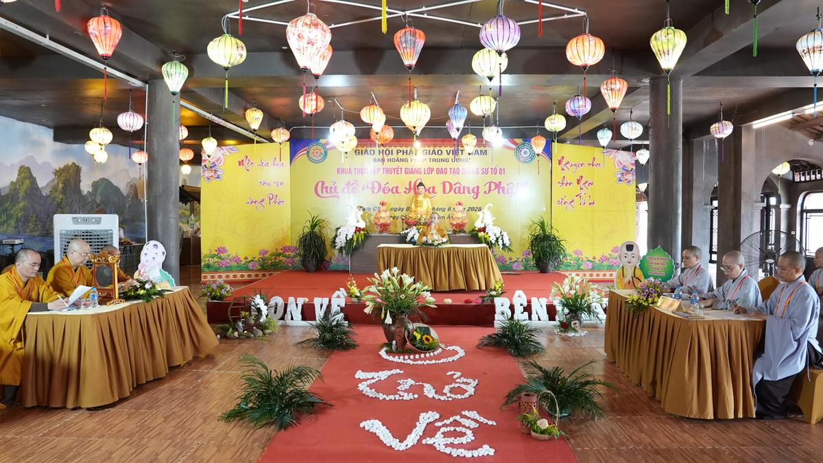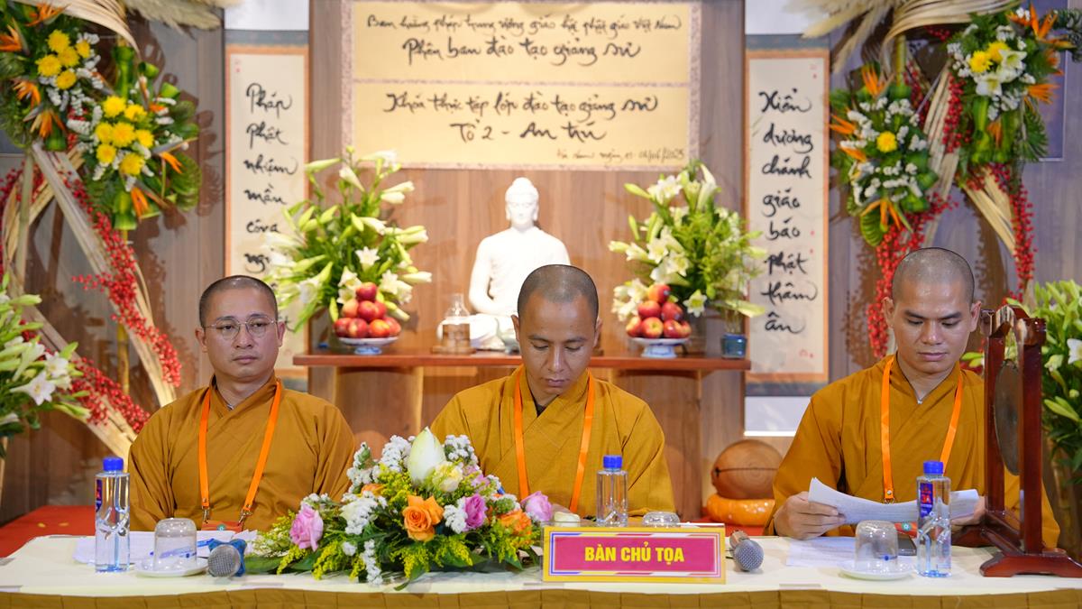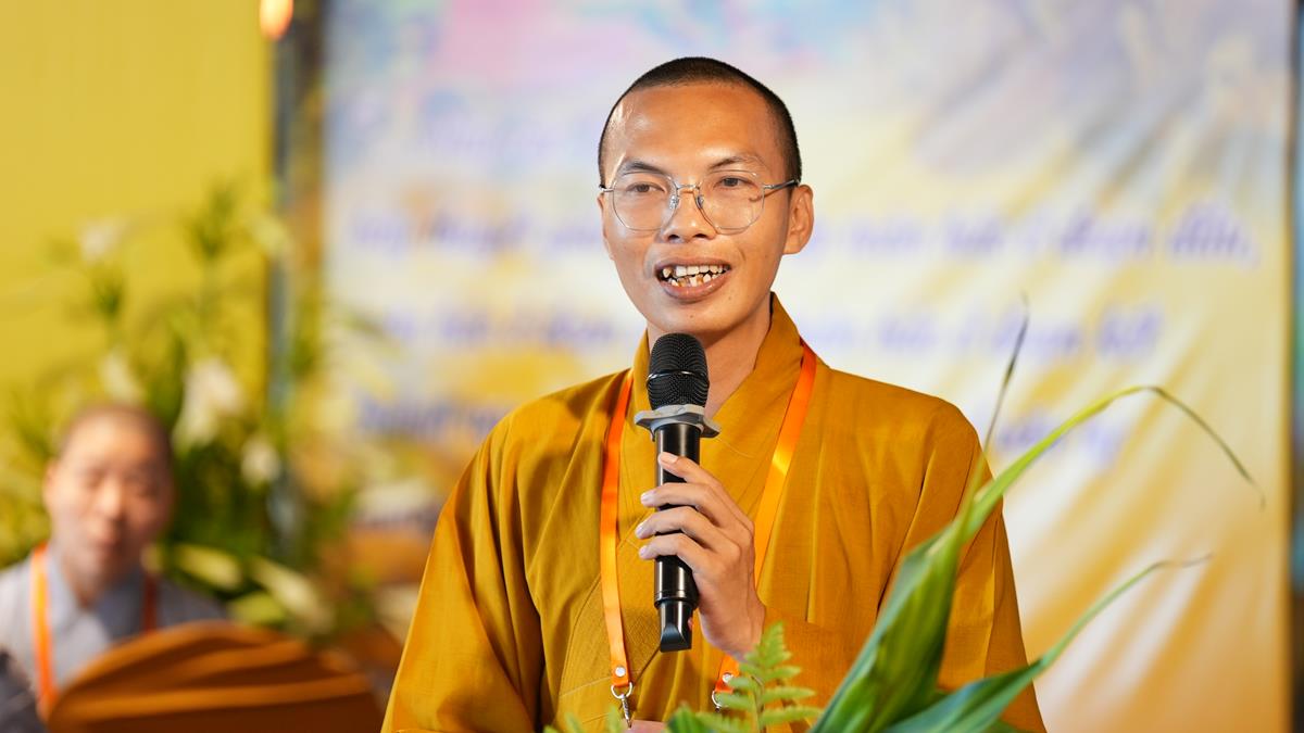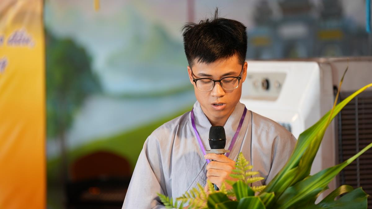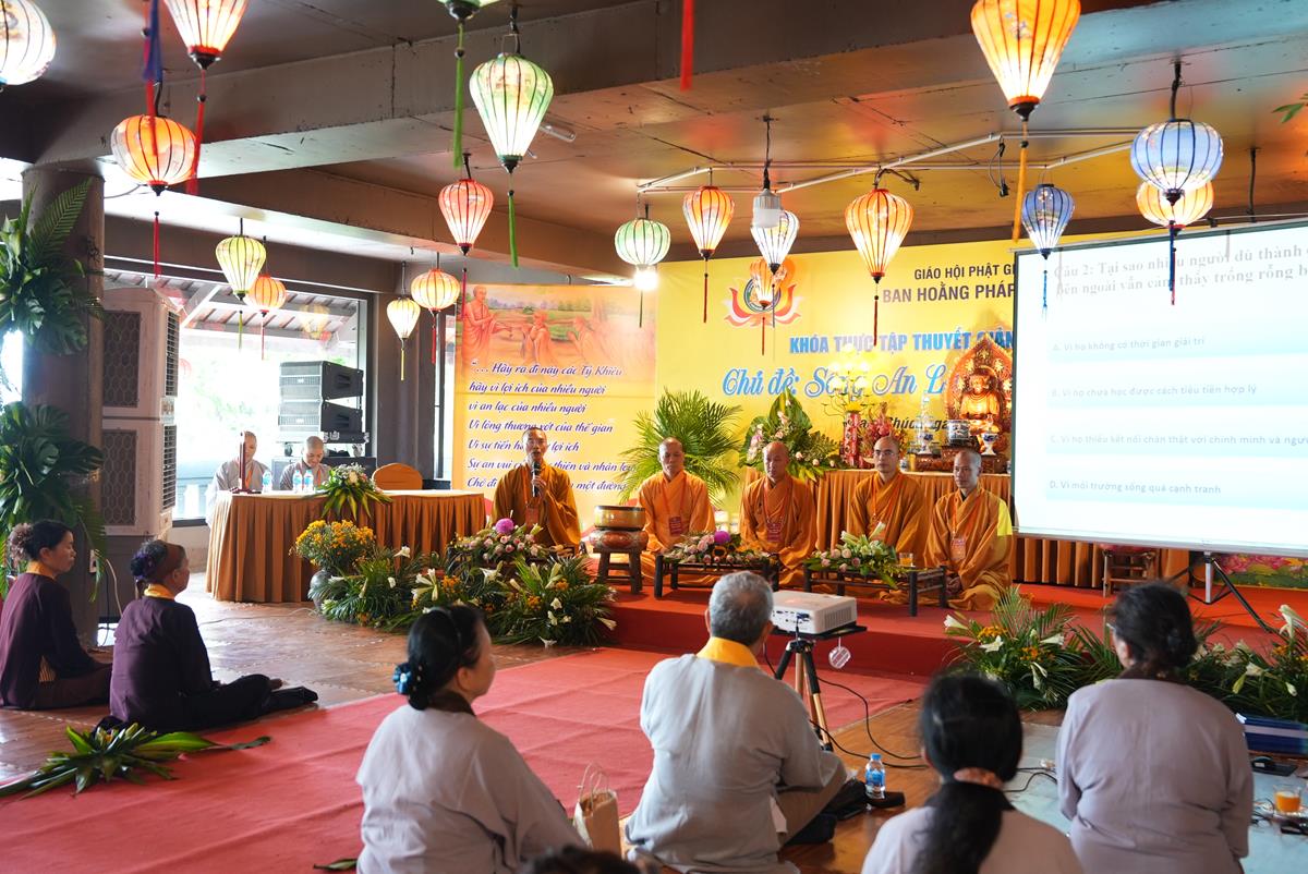 Sau khoảng thời gian lắng đọng vào các đề tài tọa đàm khoa học mang nhiều ý nghĩa sâu sắc, chư Tăng Ni Giảng sinh của các tổ lại tiếp tục thực tập thuyết giảng, đem chính pháp đi vào đời sống qua từng câu chuyện, từng đề tài cụ thể. Tại Tổ 1, Đại đức Thích Thanh Quang đã chia sẻ bài pháp “Một lòng hướng Phật”, nhấn mạnh rằng việc giữ tâm luôn quay về Tam Bảo là nền tảng vững chắc cho đời sống an lạc trong hiện tại và tương lai. Đại đức khuyến khích hành giả ba điều: Tín tâm – Niềm tin vững chắc nơi Phật pháp, Chính niệm – Nhận diện tâm mình trong từng phút giây, Hành trì đều đặn – Tu tập như trồng cây. Với lời dạy sâu sắc: “Mỗi ngày một chút – lâu ngày thành nhiều”, giảng sinh nhấn mạnh rằng tu tập không phải đợi khi rảnh rỗi, mà chính là học cách tạo thời gian để quay về với Phật trong từng khoảnh khắc sống.