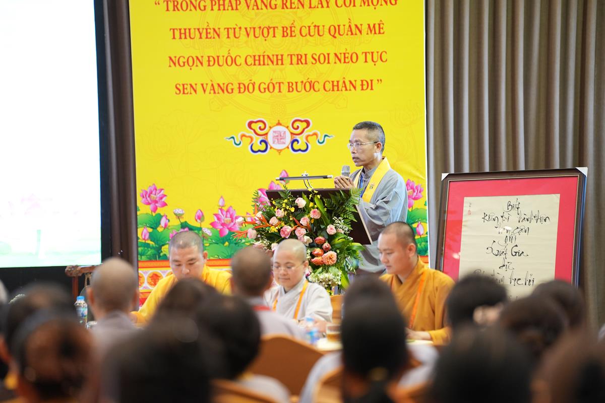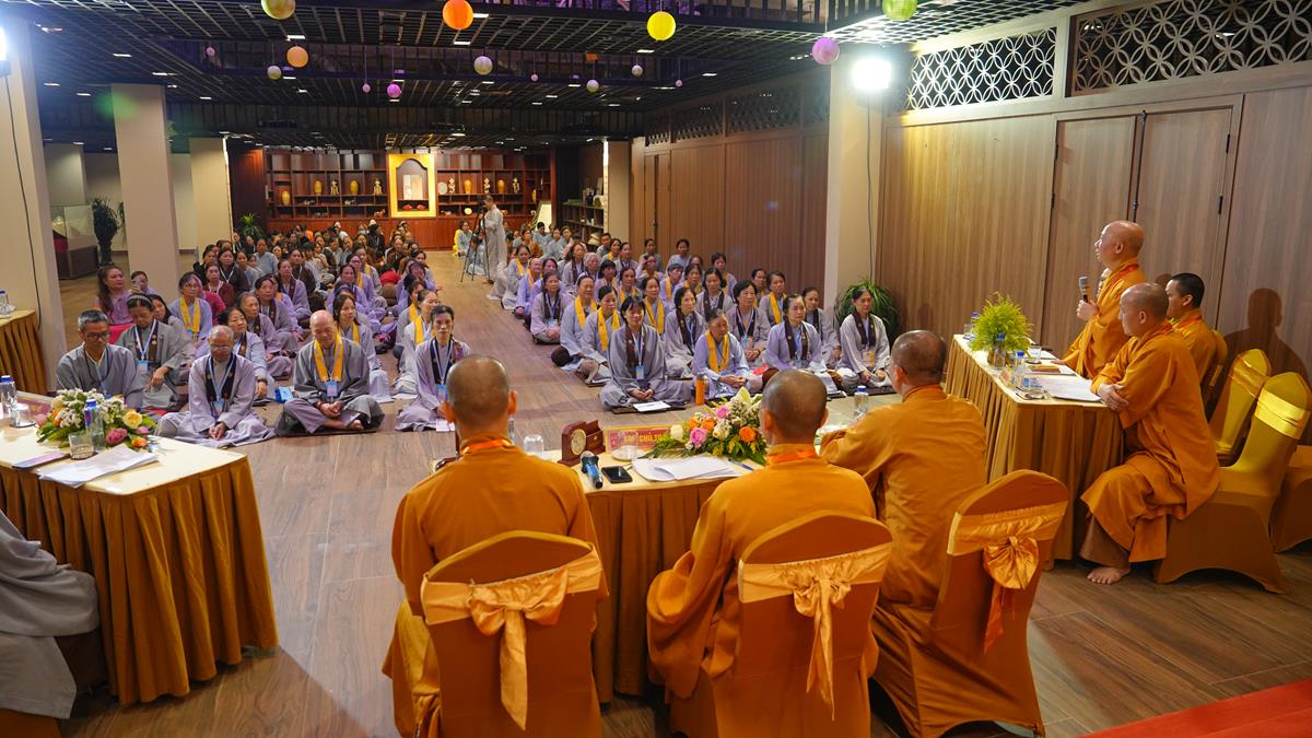 Tiếp nối những ngày tu học an lạc tại khóa thực tập dành cho chư Tăng Ni giảng sinh khóa II khu vực phía Bắc do Phân ban Đào tạo Giảng sư – Ban Hoằng pháp TW tổ chức tại chùa Tam Chúc (tỉnh Hà Nam), sáng ngày 03/06/2025 (nhằm ngày 08 tháng 5 năm Ất Tỵ), ngày tu tập thứ ba đã được khởi đầu bằng chuỗi tọa đàm khoa học với những chủ đề vừa mang chiều sâu tư tưởng Phật học, vừa gắn bó mật thiết với đời sống hiện đại.