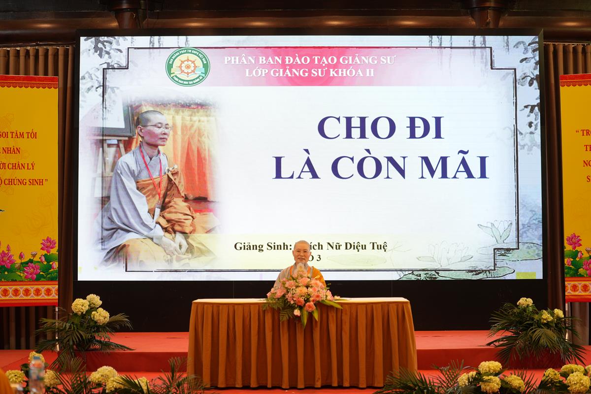 Với câu chuyện giản dị về “Anh thanh niên nghèo khổ” được kể trong bài thuyết giảng “Sự cho đi sẽ còn mãi” bởi giảng sư Thích Nữ Diệu Tuệ thuộc Tổ 3, hình ảnh về sự cho đi – không chỉ là vật chất mà là tình thương, sự chia sẻ – đã in sâu trong tâm khảm người nghe. Qua bài thuyết giảng của giảng sư, các Phật tử có thể hiểu được bố thí là hành động cao đẹp, mang lại lợi ích cho cả người cho và người nhận. Gieo mầm thiện lành bằng việc cho đi, chúng ta sẽ nhận lại nhiều hơn thế.