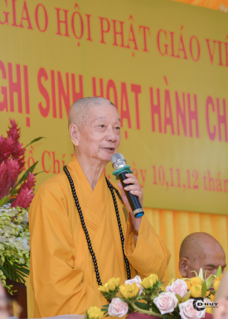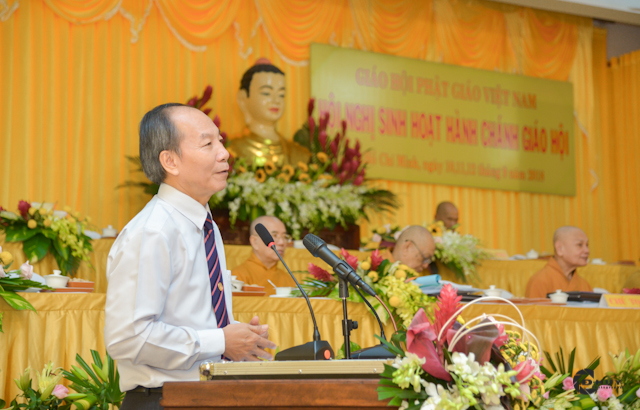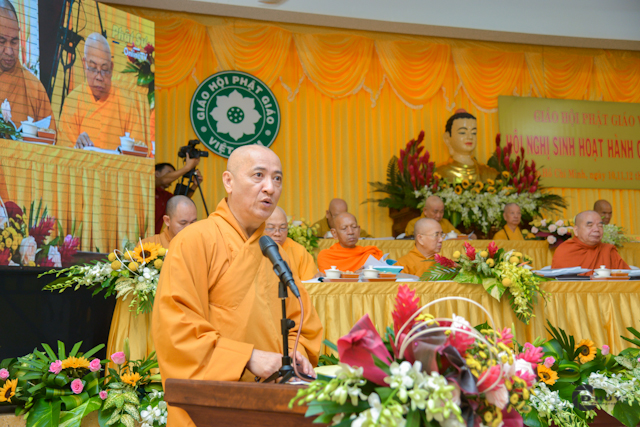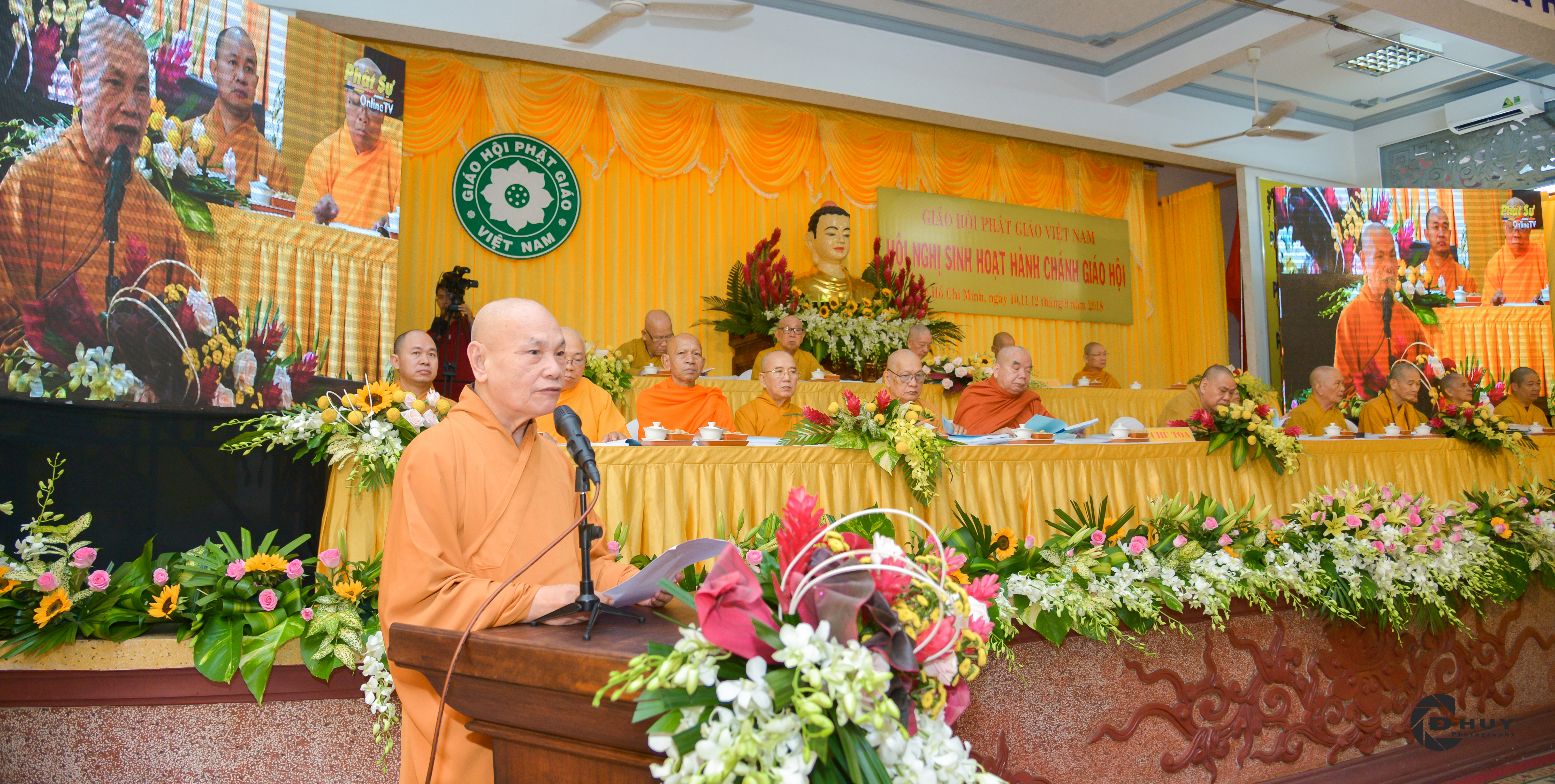 Phát biểu khai mạc Hội nghị, Hoà thượng Chủ tịch nhấn mạnh: “Để các công tác Phật sự của Giáo hội nhiệm kỳ VIII (2017-2022) được triển khai, thực hiện đồng bộ và có kết quả trên tinh thần “Trí tuệ – Kỷ cương – Hội nhập – Phát triển”, hôm nay Trung ương Giáo hội tổ chức Hội nghị Sinh hoạt Hành chánh Giáo hội năm 2018 tại Hội trường Văn phòng 2 Trung ương Giáo hội dưới sự chứng minh của chư Tôn đức Ban Thường trực Hội đồng Chứng minh, chư Tôn đức lãnh đạo Ban Thường trực Hội đồng Trị sự với sự tham dự của toàn thể đại biểu Trung ương, tỉnh thành và các Ban chuyên môn cùng chư vị khách quý đại diện Ban Tôn giáo Chính phủ, các Bộ ngành Trung ương và Thành phố Hồ Chí Minh.