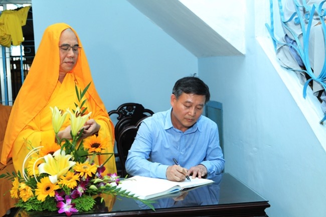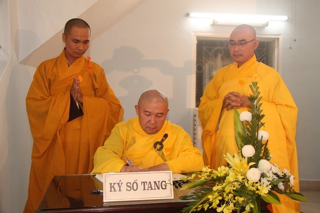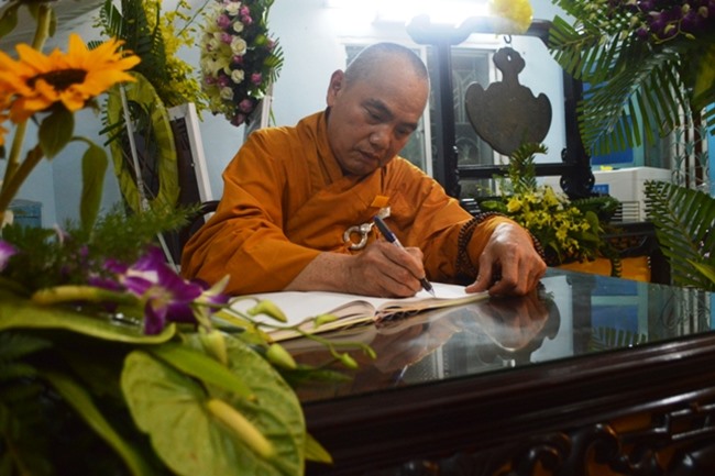 ĐĐ. Thích Chơn Trí thay mặt Thường trực BTS GHPGVN tỉnh Đồng Tháp ký sổ tang